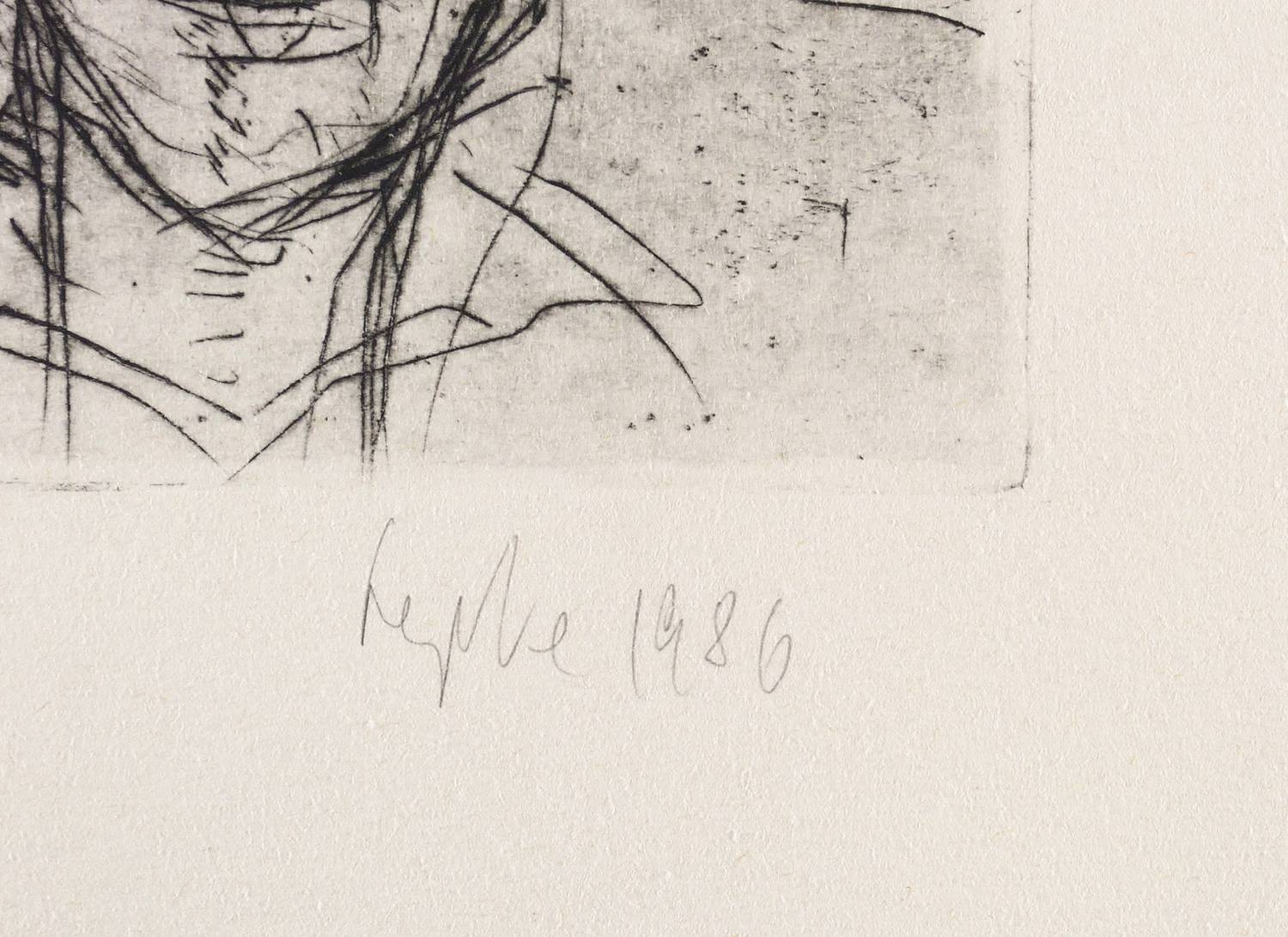 1986. Radierung / Kaltnadel, in Schwarz, auf schwerem chamois Velin. – Originale Künstlergrafik, von Gerda Lepke. – Auflage Exemplar Nr. 4/10. – 16,0 x 21,3 cm (Darstellung / Platte), 27 x 40 cm (Blatt).