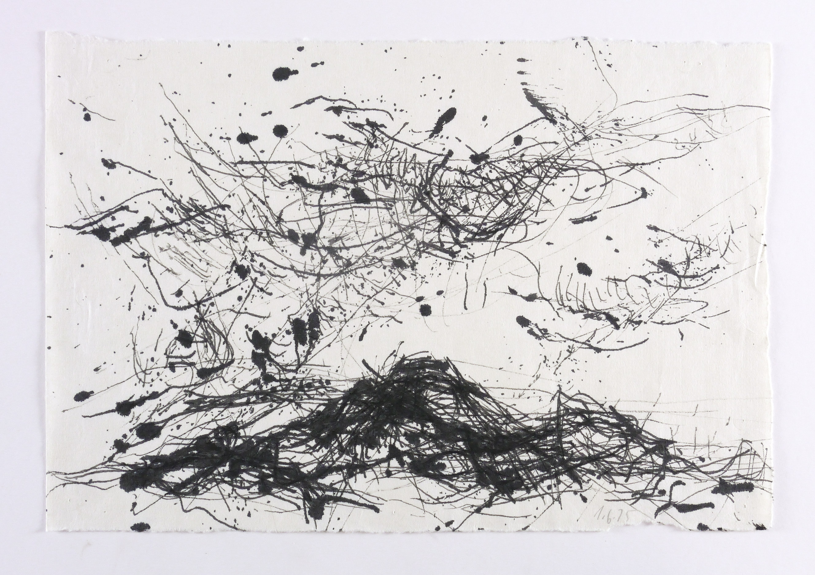 1.6.75. Zeichnung / Tusche, auf Büttenpapier. – Originale Künstlergrafik, von Gerda Lepke. – Unikat. – 26,3 x 39,0 cm (Darstellung / Blatt).