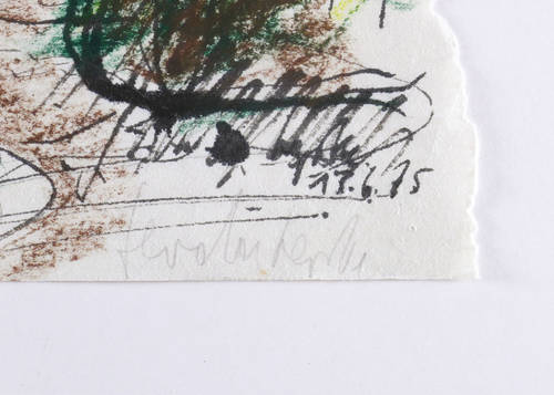 13.6.1975. Mischtechnik / Aquarell, mit Tusche & Kreidestift auf Büttenpapier. – Originale Künstlergrafik, von Gerda Lepke. – Unikat. – 36,2 x 24,5 cm (Darstellung / Blatt).