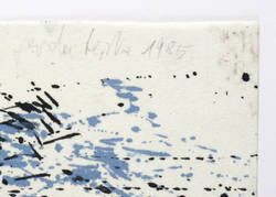 17.7.1985. Mischtechnik / Aquarell, mit Tusche, auf Vlies. – Originale Künstlergrafik, von Gerda Lepke. – Unikat. – 36,2 x 46,7 cm (Darstellung / Blatt).