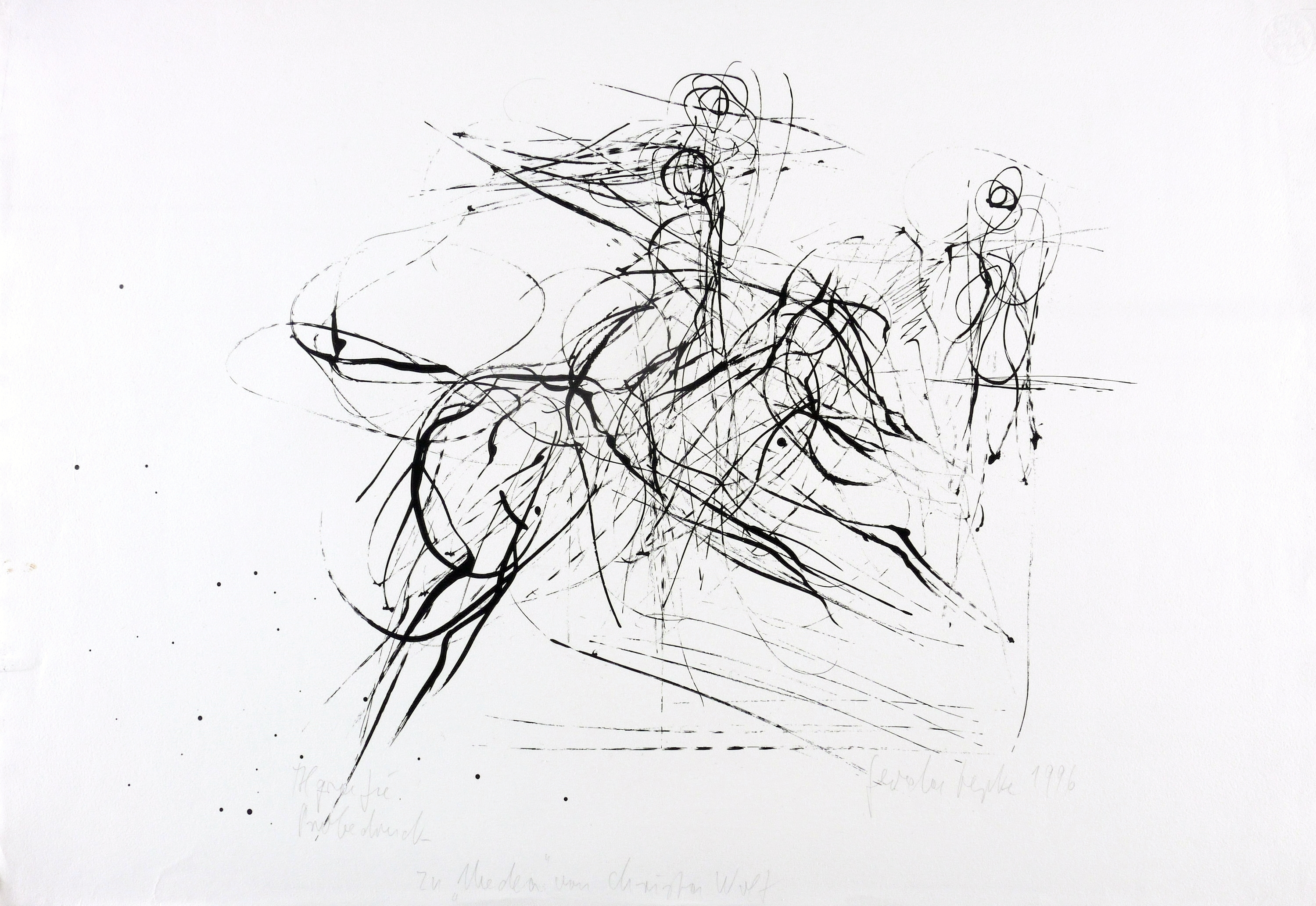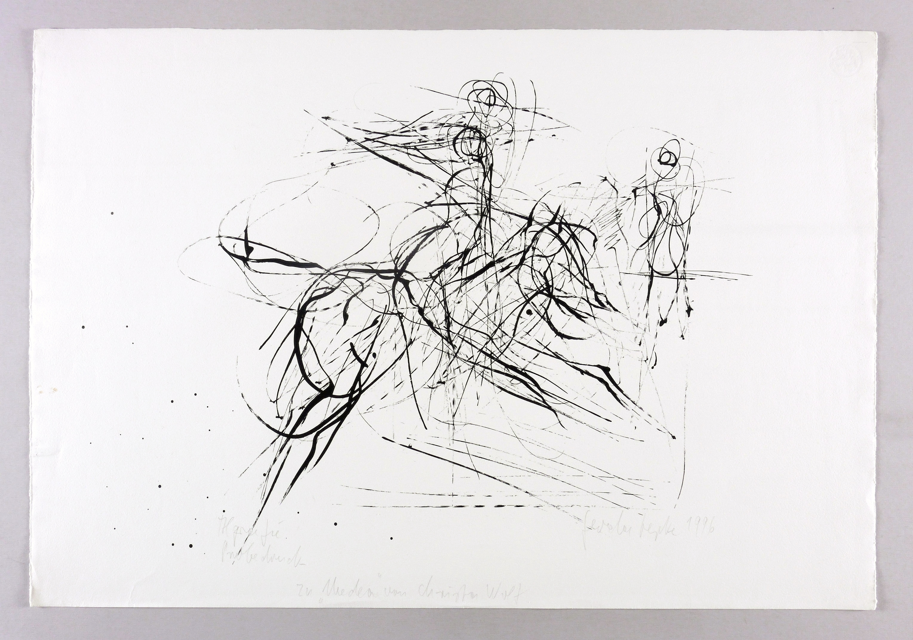 1996. Algrafie / Pinselalgrafie, in Schwarz, auf rauem weißem Hahnemühle. – Originale Künstlergrafik, von Gerda Lepke. – Probedruck. – 54 x 79 cm (Blatt), 45,4 x 61,8 cm (Darstellung / Druckbild).