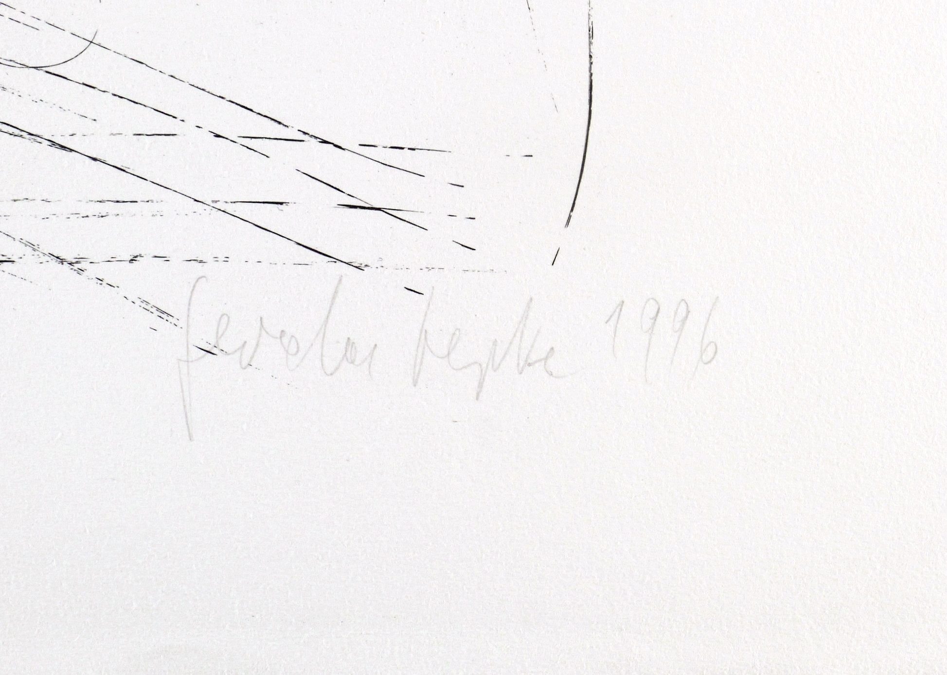 Rechts unten in Bleistift signiert und datiert: ″Gerda Lepke 1996″. Links Auflagen- und Technikbezeichnung: ″Algrafie Probedruck″. Mittig im unteren Rand Titel: ″Zu 'Medea' von Christa Wolf″. Wasserzeichen der Hahnemühle. – Im Rand leichte kaum merkliche Mängel, Griffspuren, Druckstellen und Eselsohr. Noch guter Zustand.
