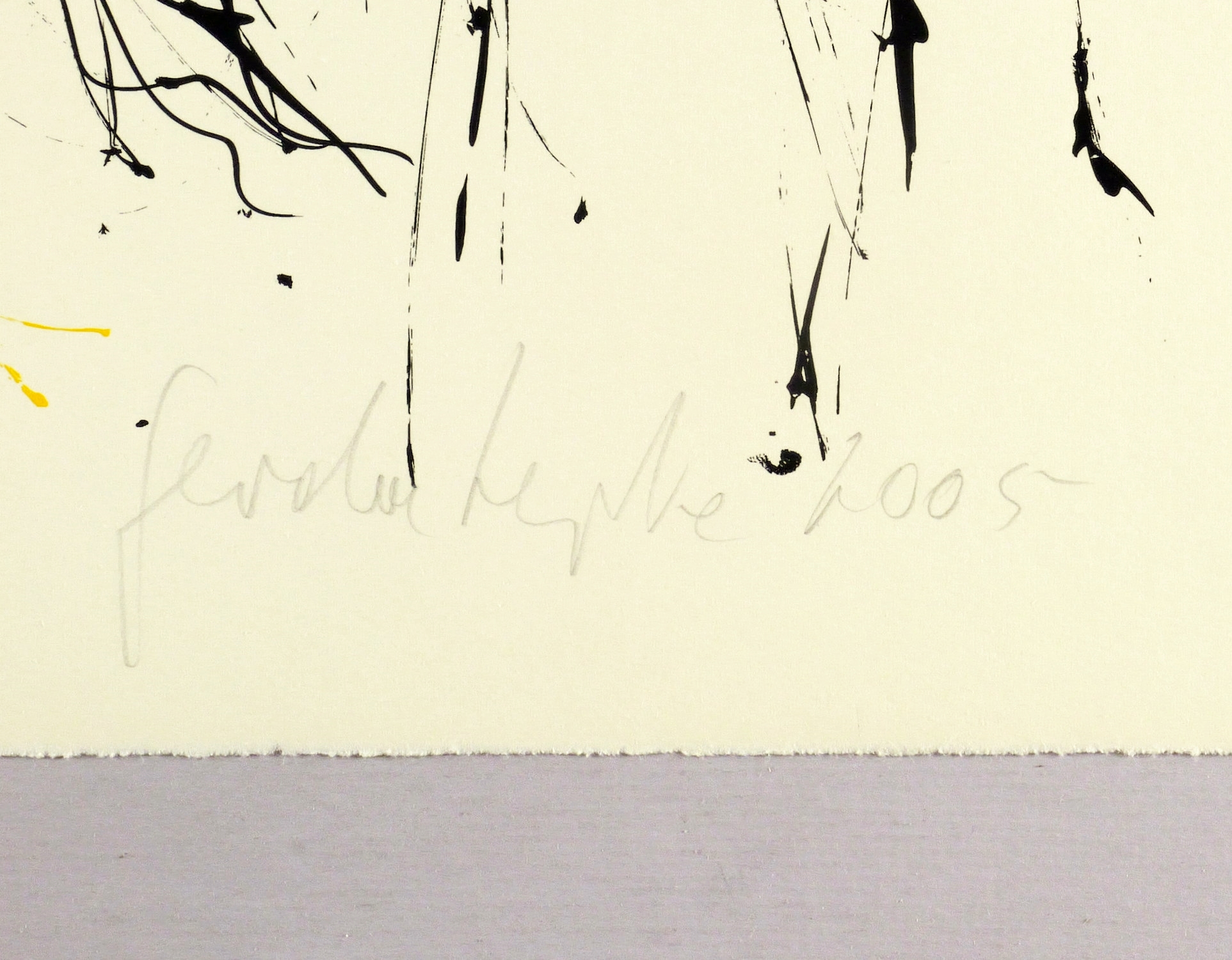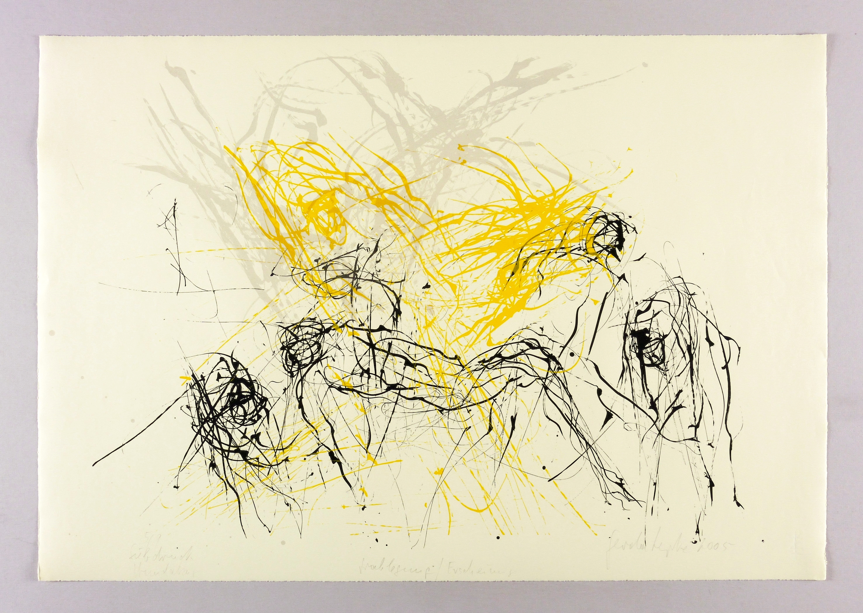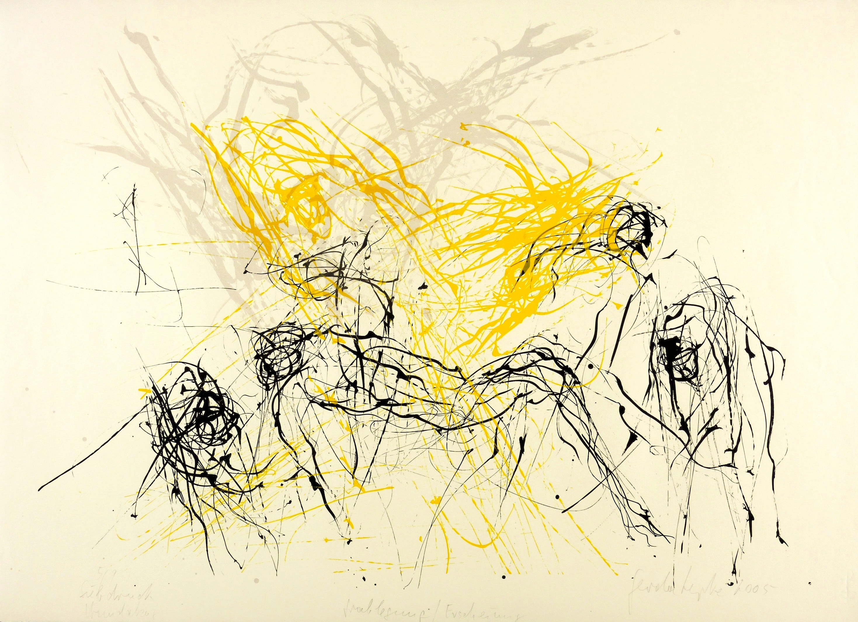 2005. Farbsiebdruck / Farbserigrafie, in 3 Farben, auf feinem gelbem Zerkall. – Originale Künstlergrafik, von Gerda Lepke. – Auflage Exemplar Nr. 5/9. – 48,2 x 67,6 cm (Darstellung / Druckbild), 54 x 77 cm (Blatt).