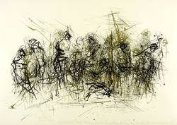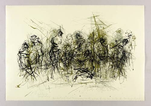 2014. Farbsiebdruck / Farbserigrafie, in Hellgrau, Olivegrün & Schwarz, auf feinstem gelbem Zerkall. – Originale Künstlergrafik, von Gerda Lepke. – Auflage Exemplar Nr. 4/9. – 48,0 x 67,1 cm (Darstellung / Druckbild), 54 x 77 cm (Blatt).
