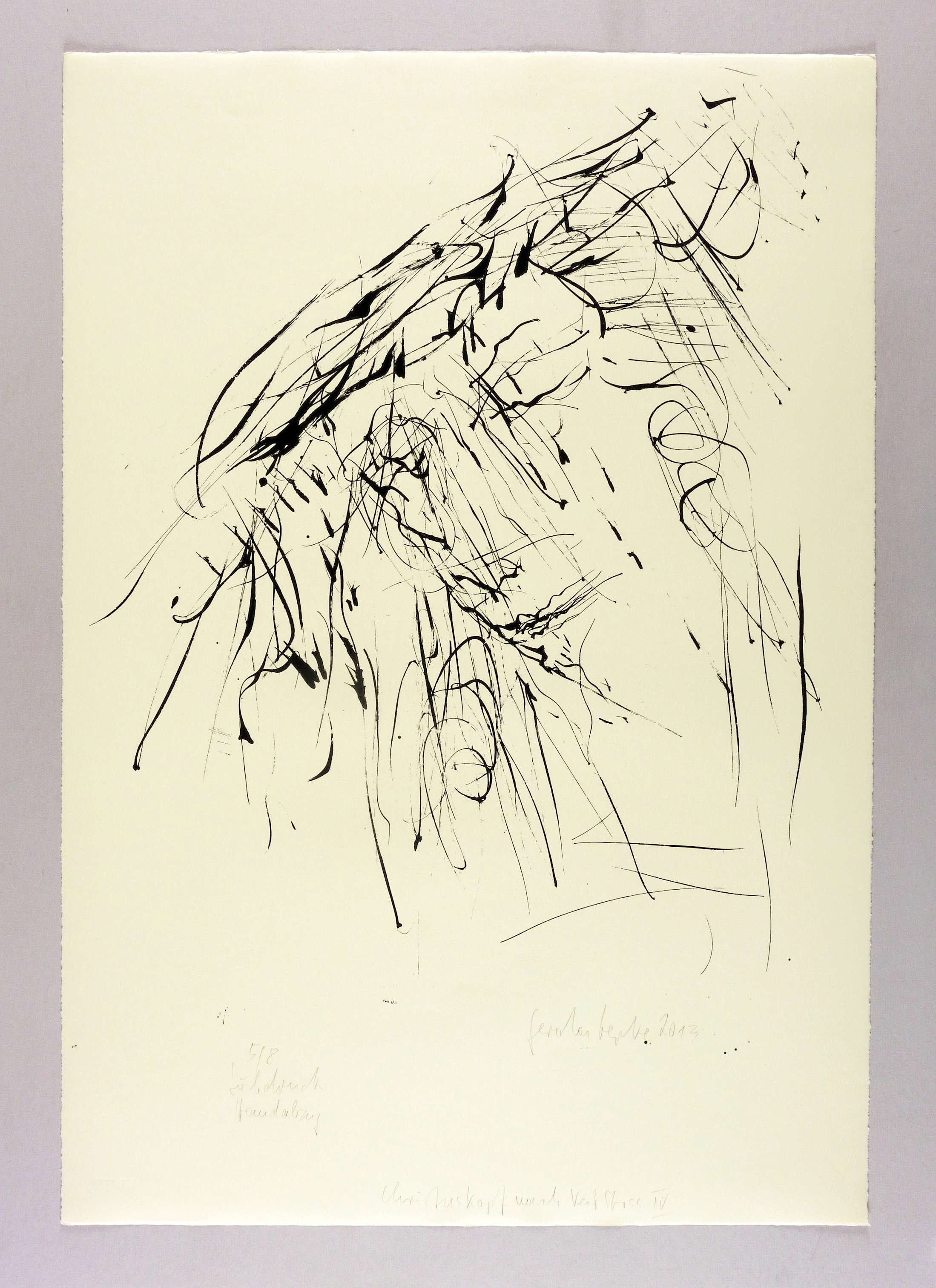 Rechts unten in Bleistift signiert und datiert: ″Gerda Lepke 2013″. Links Auflagen- und Technikbezeichnung: ″5/8 / Siebdruck Handabzug″. Im unteren Blattrand Titel: ″Christuskopf nach Veit Stoss IV″. – Tadellos. Sehr guter Zustand.