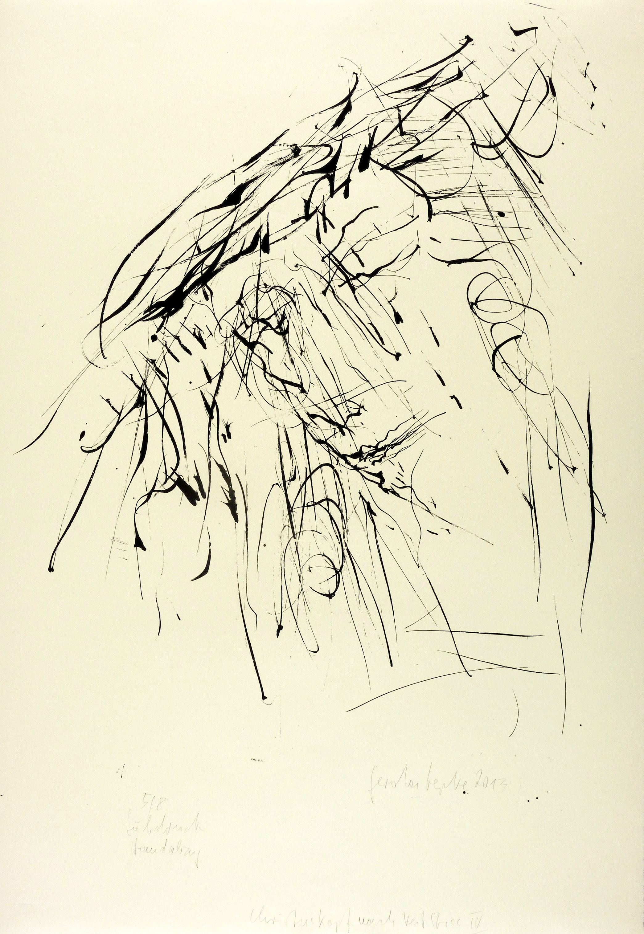 2013. Siebdruck / Serigrafie, in Schwarz, auf feinem gelbem Zerkall. – Originale Künstlergrafik, von Gerda Lepke. – Auflage Exemplar Nr. 5/8. – 59,5 x 48,1 cm (Darstellung / Druckbild), 77 x 54 cm (Blatt).