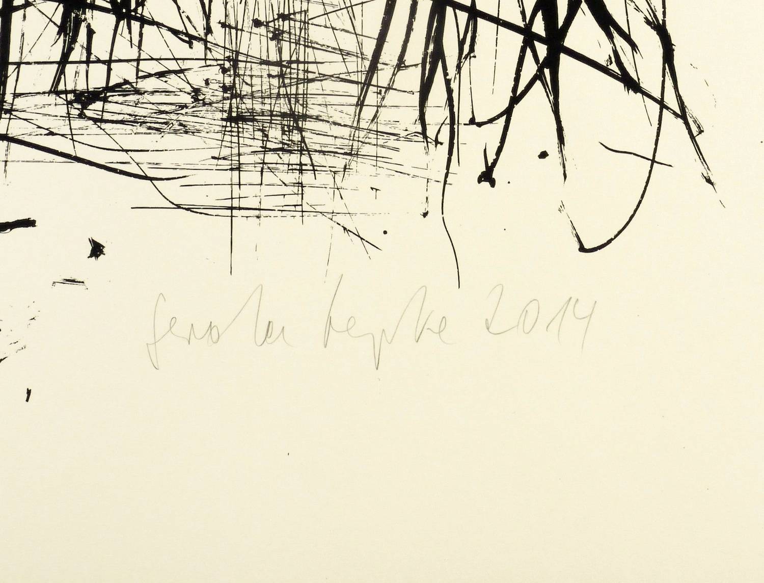 2014. Siebdruck / Serigrafie, in Schwarz, auf feinstem gelbem Zerkall. – Originale Künstlergrafik, von Gerda Lepke. – Auflage Exemplar Nr. 9/9. – 47,4 x 67,2 cm (Darstellung / Druckbild), 54 x 77 cm (Blatt).