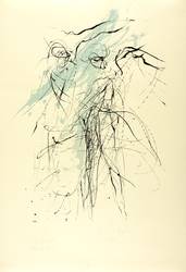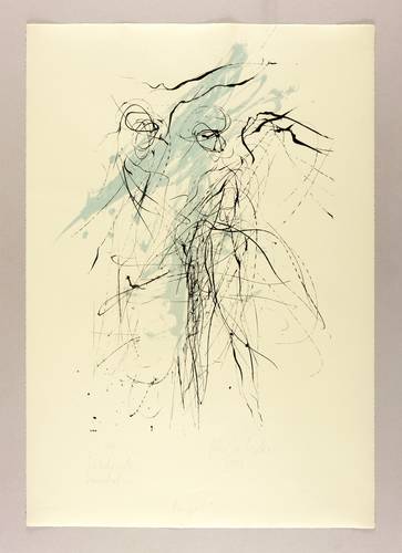 2006. Farbsiebdruck / Farbserigrafie, in Taubenblau & Schwarz, auf feinem gelbem Zerkall. – Originale Künstlergrafik, von Gerda Lepke. – Auflage Exemplar Nr. 7/7. – 62,3 x 43,0 cm (Darstellung / Druckbild), 77 x 54 cm (Blatt).