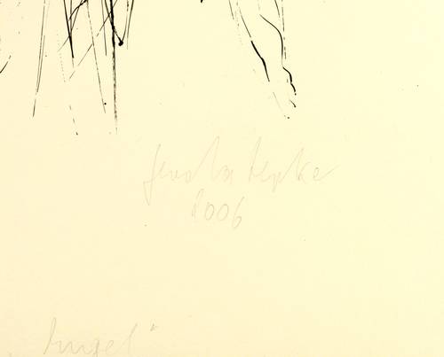 Rechts unten in Bleistift signiert und datiert: ″Gerda Lepke 2006″. Links Auflagenbezeichnung: ″7/7″. Dazu bezeichnet: ″Siebdruck / Handabzug″. Darunter mittig Titel: ″Engel″. Wasserzeichen von Zerkall. – Tadellos. Sehr guter Zustand.