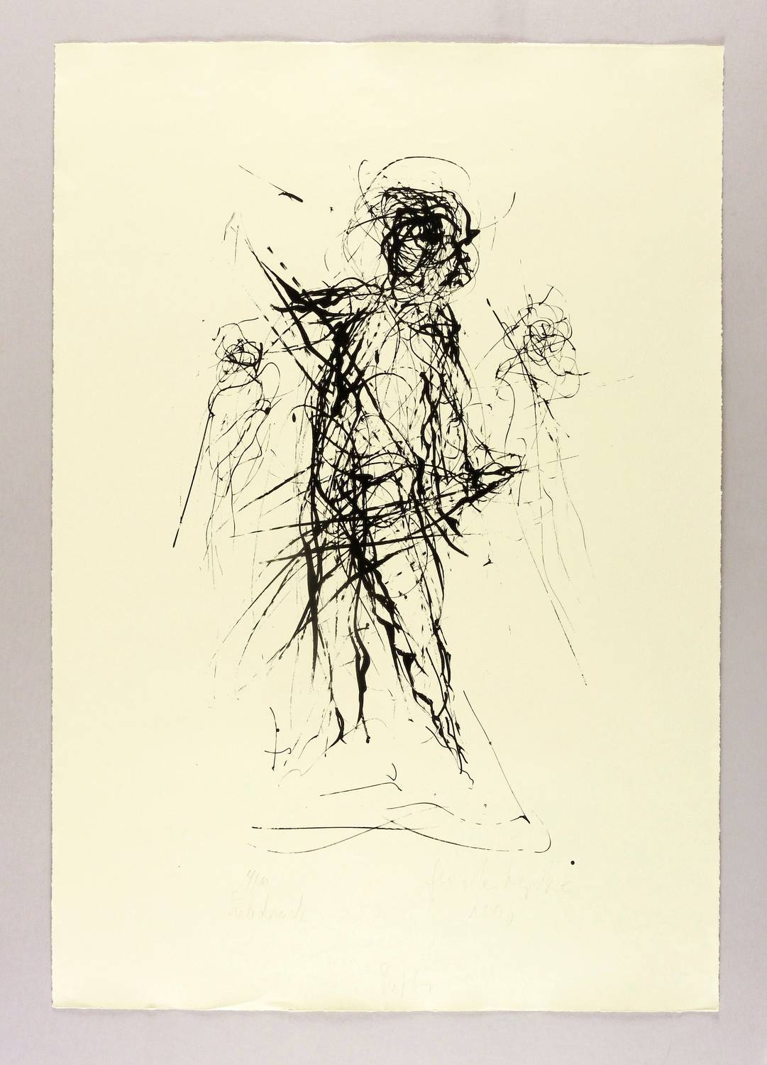 Rechts unten in Bleistift signiert und datiert: ″Gerda Lepke 2006″. Links Auflagen- und Technikbezeichnung: ″4/10 / Siebdruck″. Im Blatrand unten mittig Titel: ″Putto″. Wasserzeichen von Zerkall. – Sehr guter Zustand.