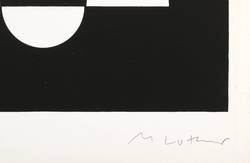 Manfred Luther (1925 Dresden - 2004 Dresden). Deutscher Maler und Grafiker. Namhafter Vertreter der Konkreten Kunst in der DDR. 1952-55 Arbeit als Konstrukteur. Ab 1955 freischaffender Maler und Grafiker. 1956-62 Zeichenunterricht bei diversen Künstlern und erste konkrete Zeichnungen. 1962-66 Studium bei Ernst Hassebrauk. 1968 24 Tuschblätter "Konkrete Zeichnungen", aus denen die Siebdruck-Serie "schwarz-weiß-grau" (1976-85) und die Folge "paraphrasen" (1970) entwickelt werden. 1979-83 folgt die Farbsiebdruck-Serie "Farbiger Epilog". 1980-94 erreicht er seinen künstlerischen Zenit mit der Kreis-Serie "Cogito ergo sum" in Mischtechniken und Siebdruck.