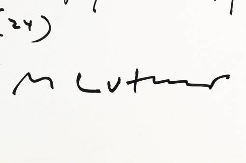 Verso in Faserstift signiert: ″M Luther″. Dazu Folgentitel, Technik, Auflagenbezeichnung, Folgen-Nr. und Jahr. Druckersignet. – Druck von Ekkehard Götze, dem bevorzugten Siebdrucker von Hermann Glöckner. – Sehr guter Zustand.