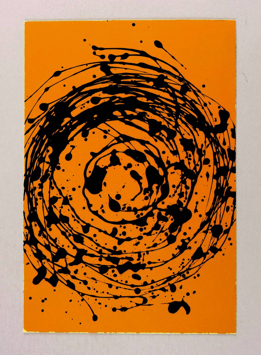 1992. Mischtechnik / Lackfarbe, in Schwarz, über Siebdruck in Orange, auf Karton. – Originale Künstlergrafik, von Manfred Luther. – Unikat. – 30,4 x 20,5 cm (Darstellung / Blatt).