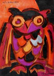 Rechts unten in schwarzer Kreide signiert: ″M Luther″. Links oben betitelt: ″Welttheater″. Verso weiter eigenhändig signiert und bezeichnet: ″M Luther // Welttheater / Theatrum mundi″. – Die im Werk Luthers immer wiederkehrende Eule ist ihm Symbol und Sinnbild der Weisheit oder universeller der Welt-Weisheit. Viele seiner Eulen-Bilder sind demzufolge auch als ″Weisheit″ betitelt, manche aber auch als ″Spiritus″ (Geist). – Sehr guter Zustand.