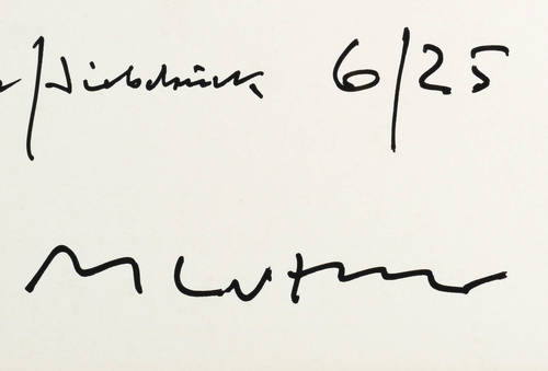 Verso in Faserstift signiert und datiert. Weiter Titel, Technik, Auflagenbezeichnung und Folge-Nr. – Rückseitig in den oberen Blattecken leichte Montagespuren. Rechts oben unscheinbare Stauchspur. Sonst ohne Mängel. Guter Zustand.