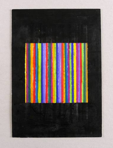 1975-1985. Mischtechnik / Wachskreide, auf glattem hellchamois Velinkarton. – Originale Künstlergrafik, von Manfred Luther. – Unikat. – 15,2 x 10,5 cm (Darstellung / Blatt).