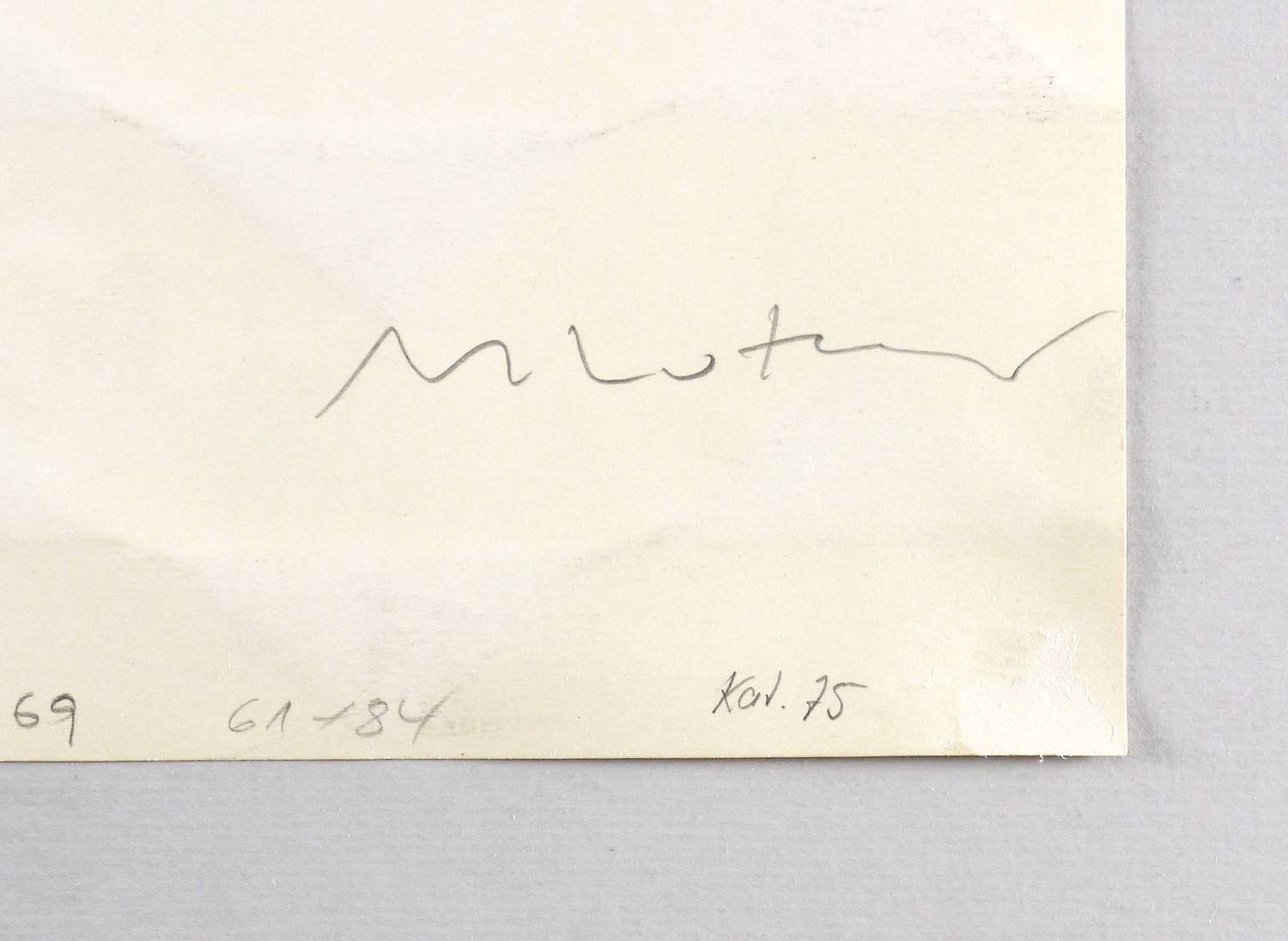 Verso in Bleistift signiert: ″M Luther″. Links bezeichnet: ″Paraphrase / Konkrete Zeichnungen″. – Ausstellung: 1991/92 Kupferstich-Kabinett Staatliche Kunstsammlungen Dresden (Ausst.-Kat. Nr. 75, Abb. S. 101). - Die ″Paraphrasen″ ordnen als Teil der Werkgruppe ″Idee Konkrete Zeichnungen″ deren Formenvokabular neu, um dessen unausschöpfliches Kombinationspotential anzudeuten. – Im oberen Rand zwei fachgerecht restaurierte kleine Risse. Guter Zustand.