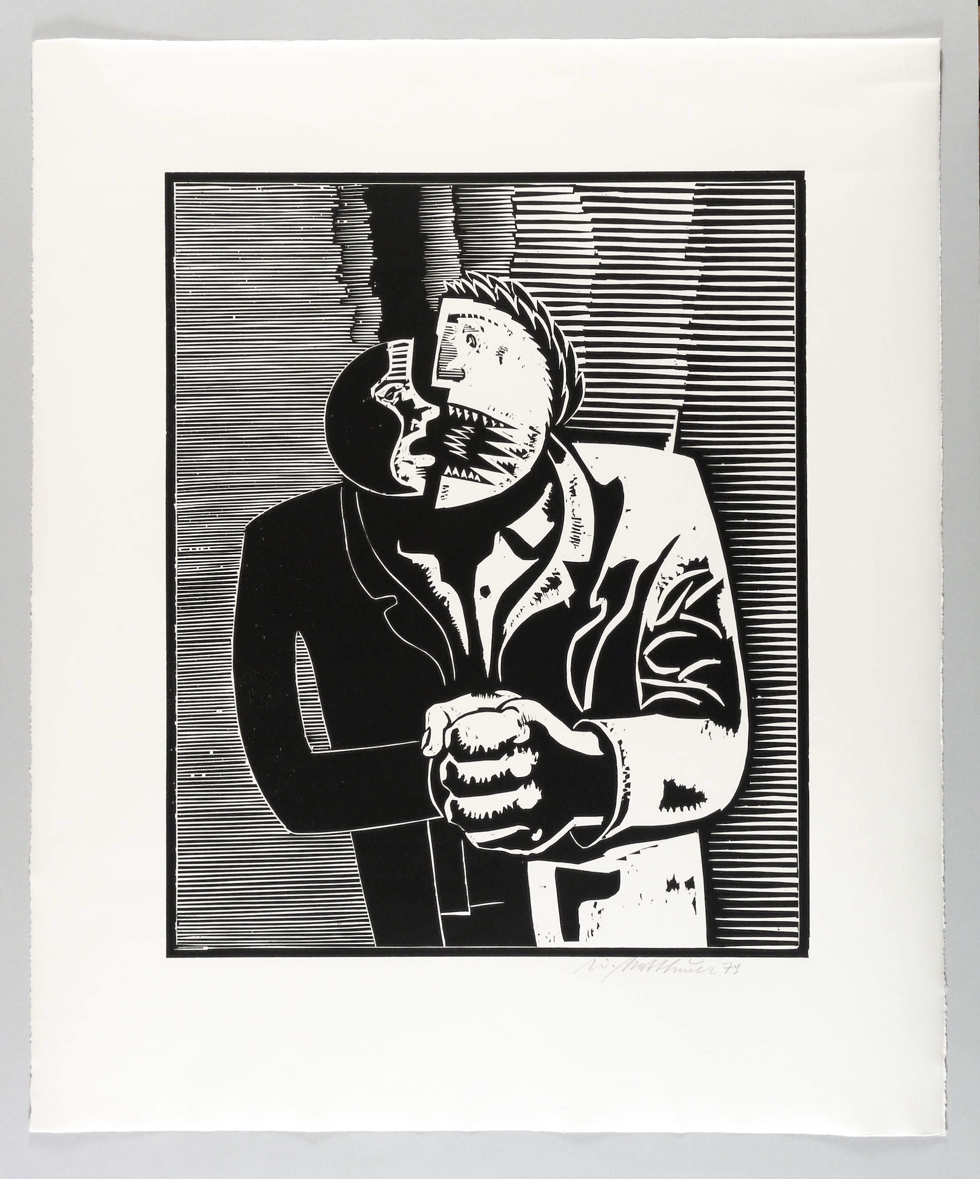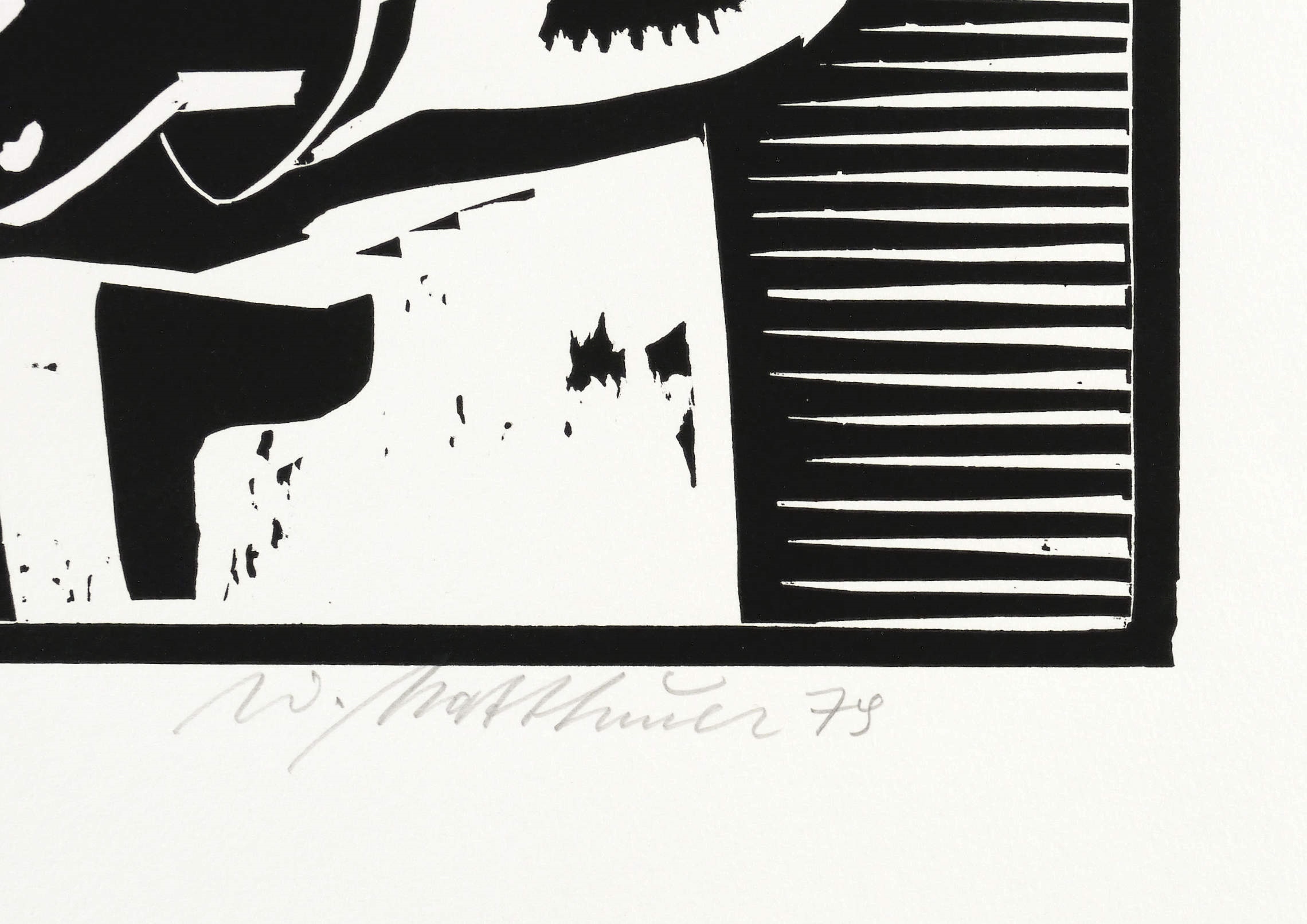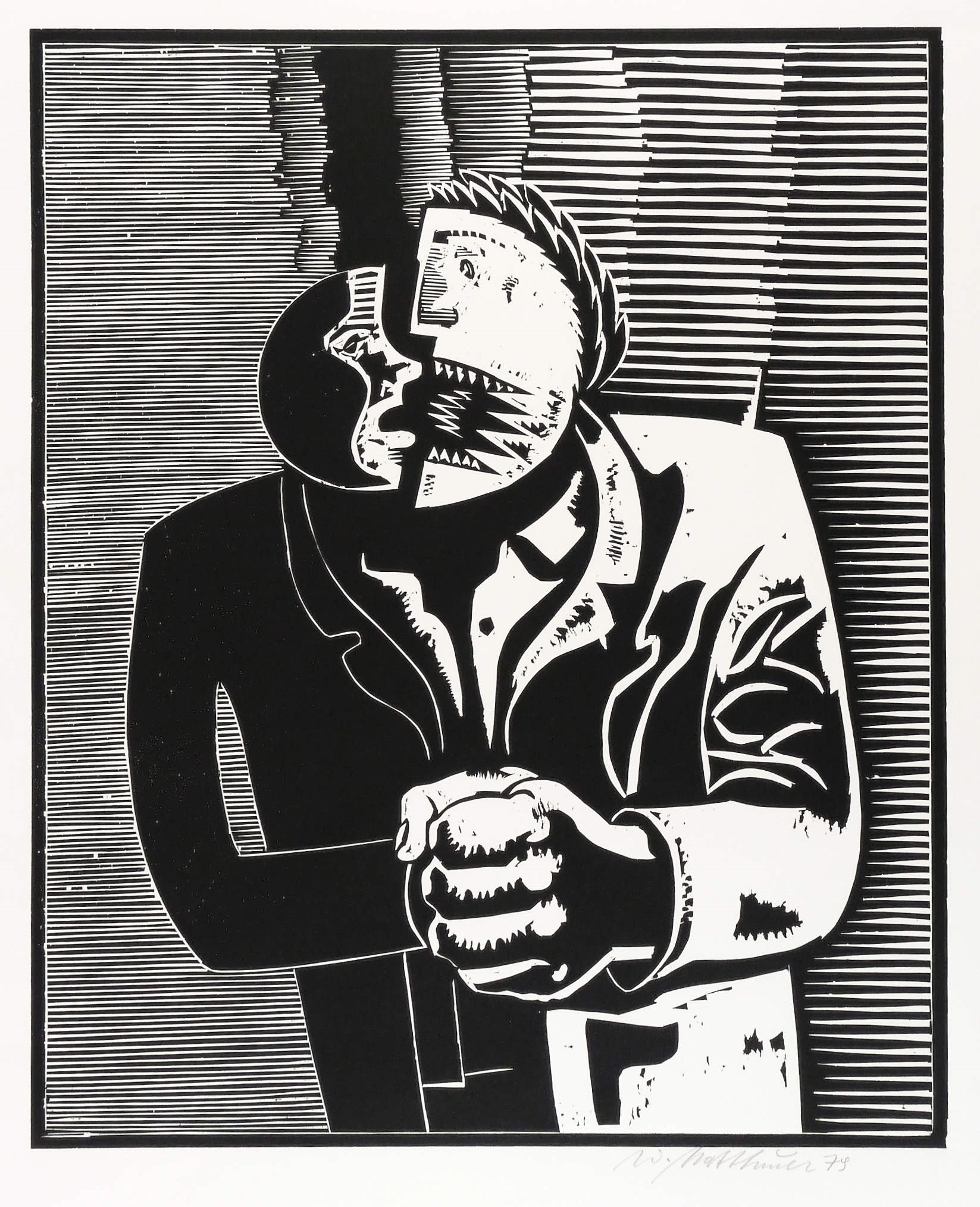 1979. Holzschnitt, in Schwarz, auf weißem Büttenkarton. – Originale Künstlergrafik, von Wolfgang Mattheuer. – 54,9 x 45,0 cm (Darstellung), 77 x 64 cm (Blatt).