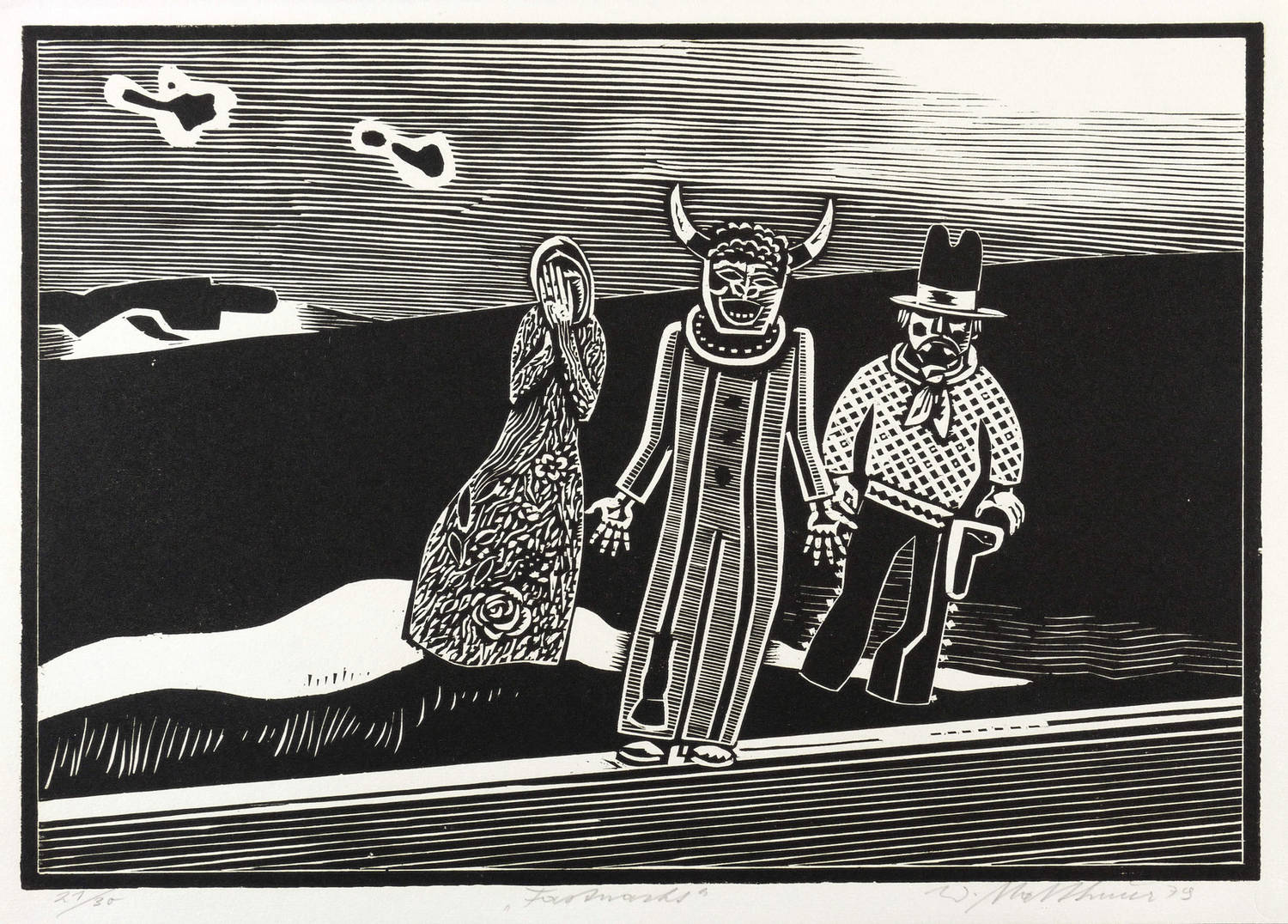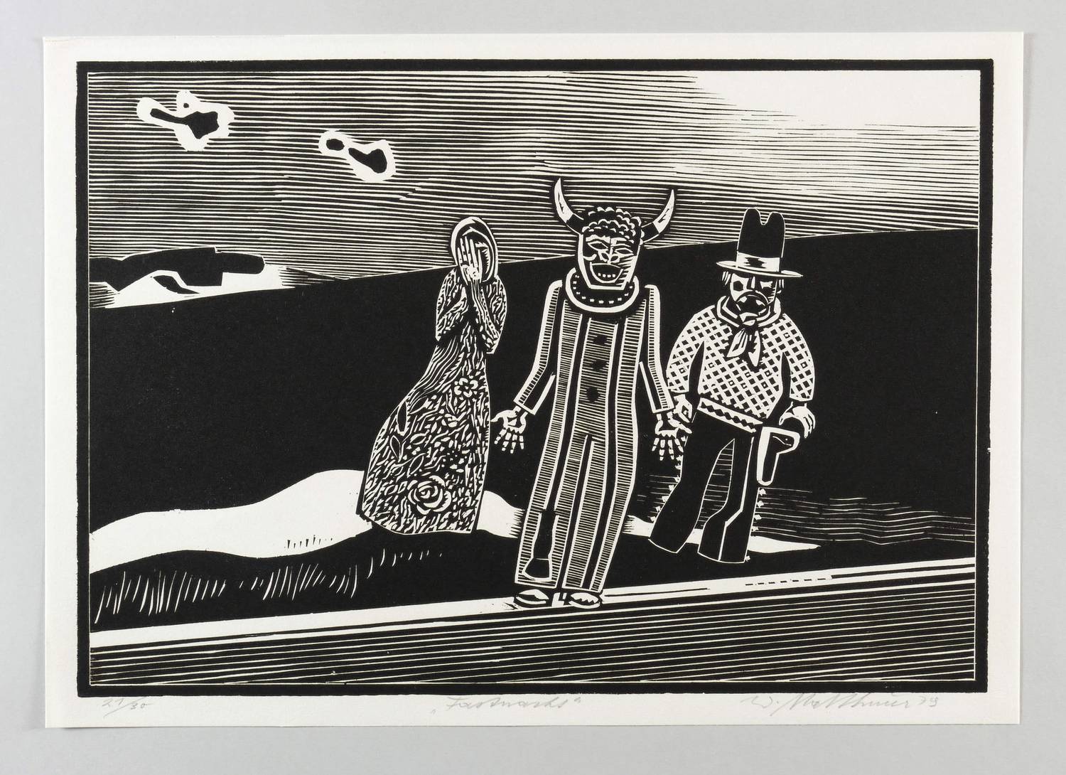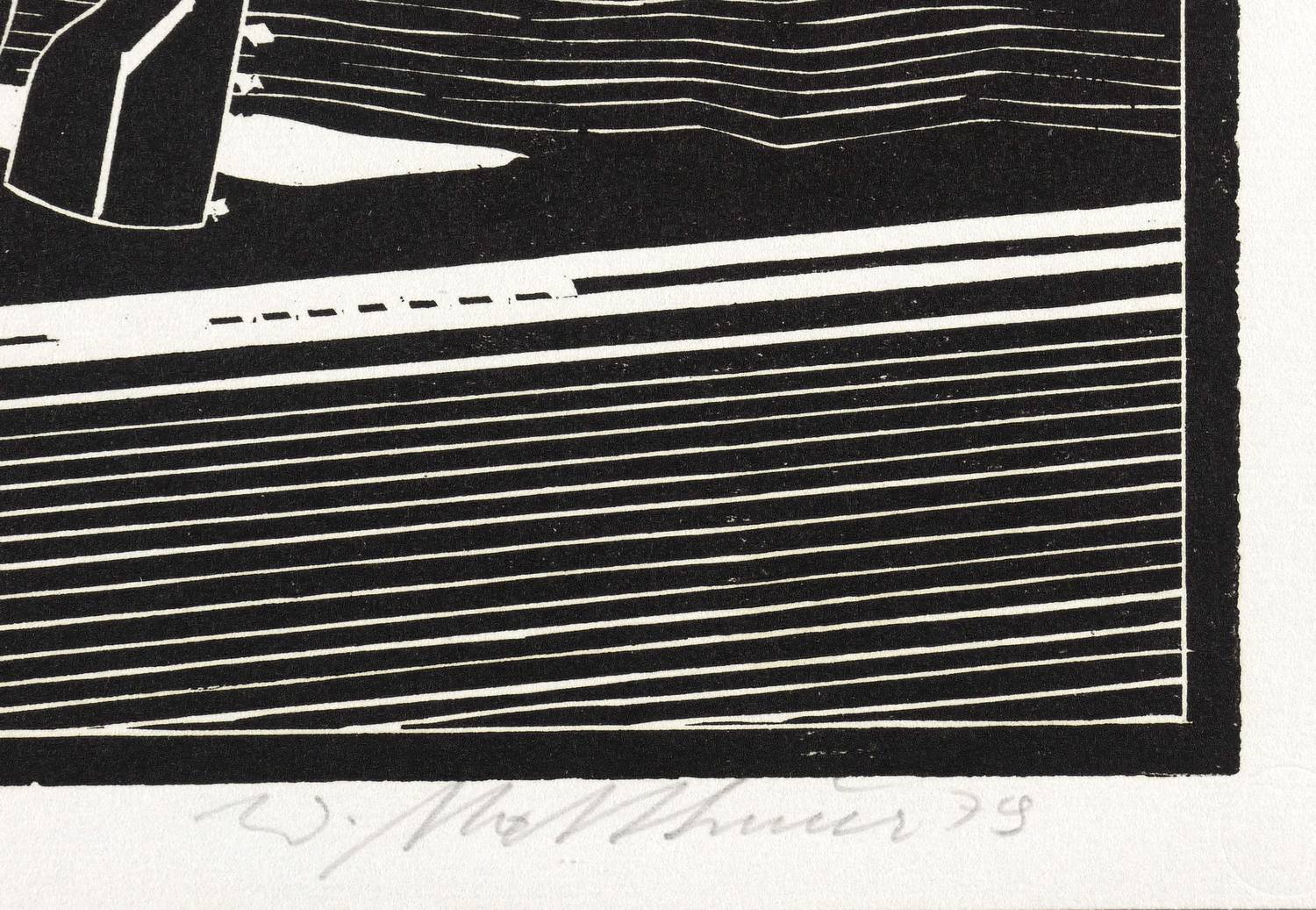 1979. Holzschnitt, in Schwarz, auf rauem weißem Papier. – Originale Künstlergrafik, von Wolfgang Mattheuer. – Auflage Exemplar Nr. 21/30. – 31,3 x 45,0 cm (Darstellung / Druckbild), 34 x 48 cm (Blatt).