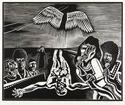 1979. Holzschnitt, in Schwarz, auf rauem weißem Velin. – Originale Künstlergrafik, von Wolfgang Mattheuer. – Auflage Exemplar Nr. 8/49. – 45,1 x 54,9 cm (Darstellung / Druckbild), 51 x 65 cm (Blatt).