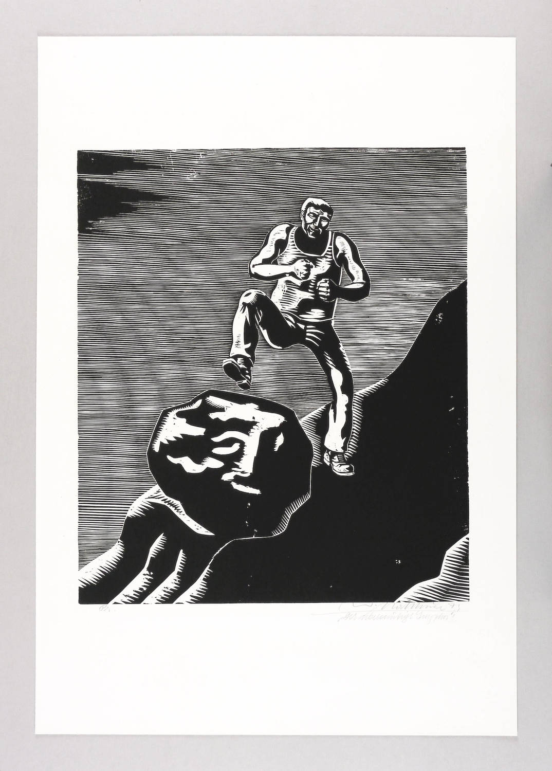 Grimm 232. Koch 190. Gleisberg 149. – Rechts unten in Bleistift signiert und datiert: ″W. Mattheuer 73″. Dazu eigenhändig Titel: ″Der übermütige Sisyphos″. Links Auflagenbezeichnung. Verso Sammlernotizen. – Originalrandiges Exemplar. Sehr guter Zustand.
