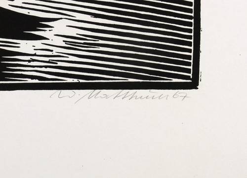 Grimm 187-2 (von 4). Koch 146 I (von III). Gleisberg 105 I. – Rechts unten in Bleistift signiert und datiert: ″W. Mattheuer 67″. – Seltener früher Zustand des Holzschnitts. Die verschiedenen Zustaände am besten bei Koch dokumentiert (vgl. Koch, S. 72/73). – Ohne jeden Tadel. Sehr guter Zustand.