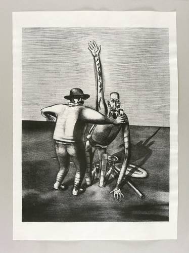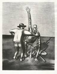 1970. Lithografie / Kreidelithografie, in Schwarz, partiell geschabt, auf festem hellchamois Maschinenbütten. – Originale Künstlergrafik, von Wolfgang Mattheuer. – Auflage Exemplar Nr. 8/25. – 64,5 x 49,0 cm (Darstellung / Druckbild), 76 x 55 cm (Blatt).