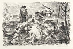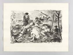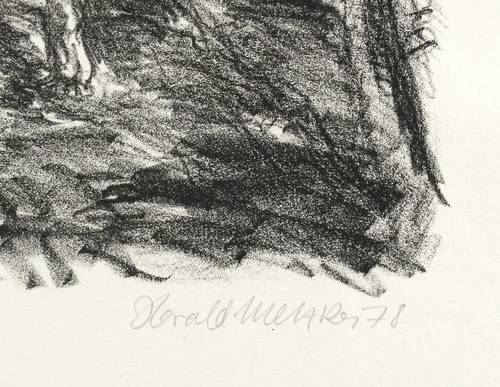 1978. Lithografie / Kreidelithografie, in Schwarz, auf hartem hellgelbem Weißenborn-Bütten. – Originale Künstlergrafik, von Harald Metzkes. – 25,0 x 38,5 cm (Darstellung / Druckbild), 36 x 48 cm (Blatt).