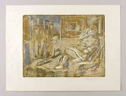 1970. Farbholzschnitt, in Ocker, Silber & Hellgrau, auf leichtem chamois Velin. – Originale Künstlergrafik, von Harald Metzkes. – Künstlerexemplar (e.a.). – 27,4 x 36,1 cm (Darstellung / Druckstock), 38 x 50 cm (Blatt).