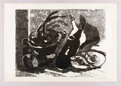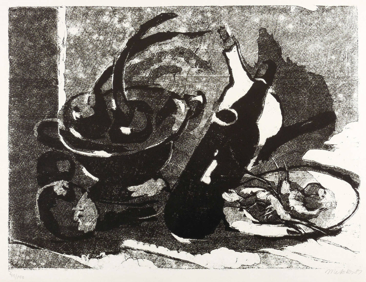 1981. Farbholzschnitt / Clair-obscure, in Graustufen & Schwarz, auf rauem Maschinenbütten. – Originale Künstlergrafik, von Harald Metzkes. – Auflage Exemplar Nr. 41/100. – 36,0 x 47,9 cm (Darstellung / Druckstock), 42 x 60 cm (Blatt).