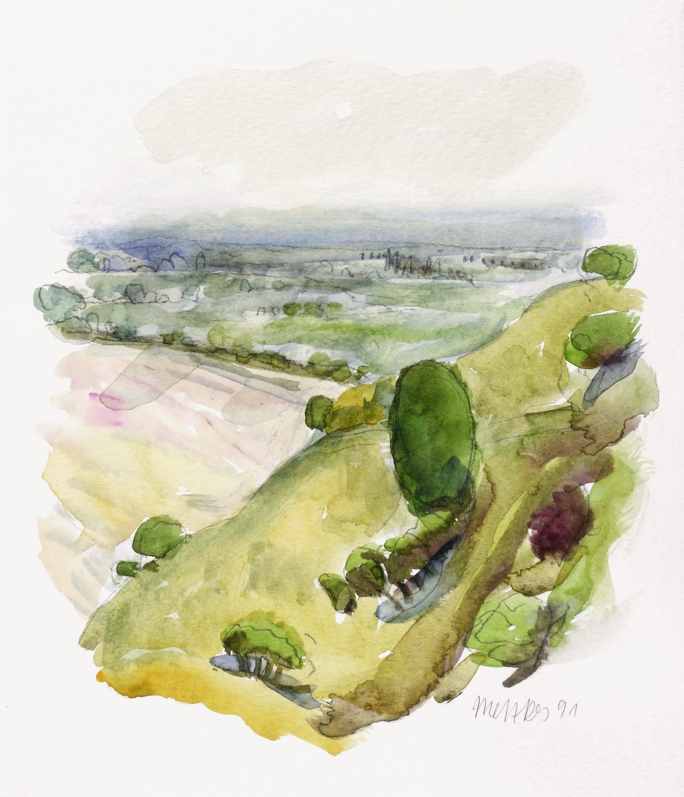 Die Aquarelle jeweils rechts unten in Bleistift signiert und datiert: ″Metzkes 91″. Die aquarellierten Blätter jeweils ohne Rückentext. Impressum mit nummerierter Auflagenbezeichnung. – Mit drei Aquarellen opulent ausgestattetes kleines Künstlerbuch in einer blattweise signierten Auflage von insgesamt 50 Exemplaren. Zu den brandenburgischen Orten Seelow, Gusow und Marxwalde jeweils ein eigener Text und ein Aquarell des Künstlers. Herausgegeben in der Edition Manfred Schmidt, gedruckt in der Friedrichshagener Presse, Berlin. Der Umschlag mit einer lithografierten brandenburgischen Landschaft. – Umschlagkarton am Rücken unmerklich gegilbt. Innen ohne Mängel. Tadellos. Sehr guter Zustand.