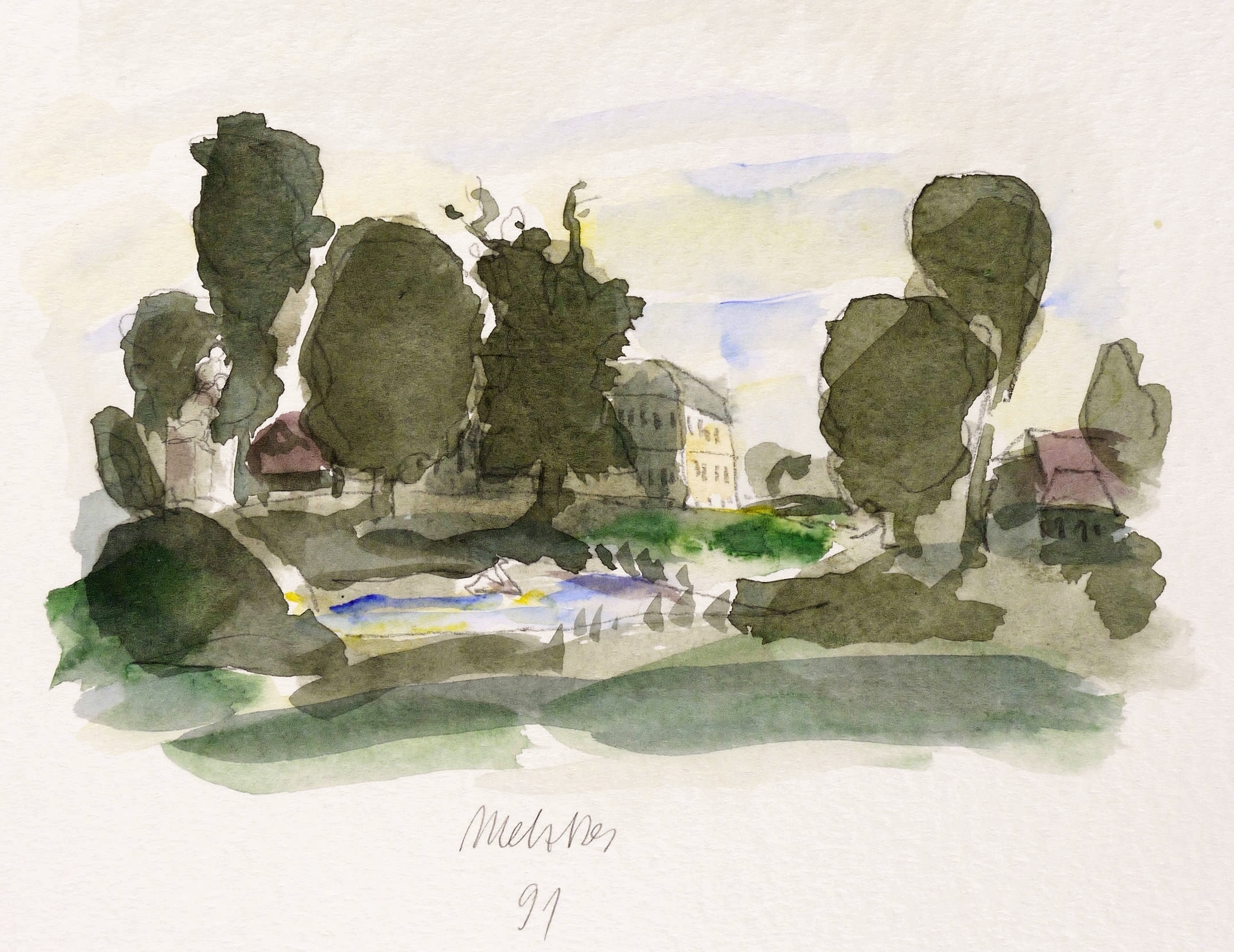 1991. Aquarell, über Bleistift, auf festem hellchamois Zanders-Parole. – Originales Künstlerbuch, von Harald Metzkes. – Unikat. – 15,3 x 20,8 cm (Darstellung), 34 x 24 cm (Blatt).
