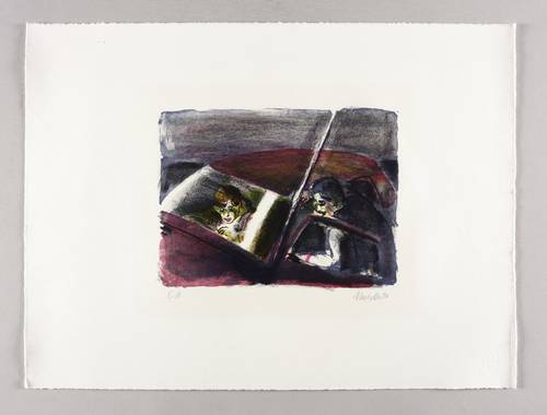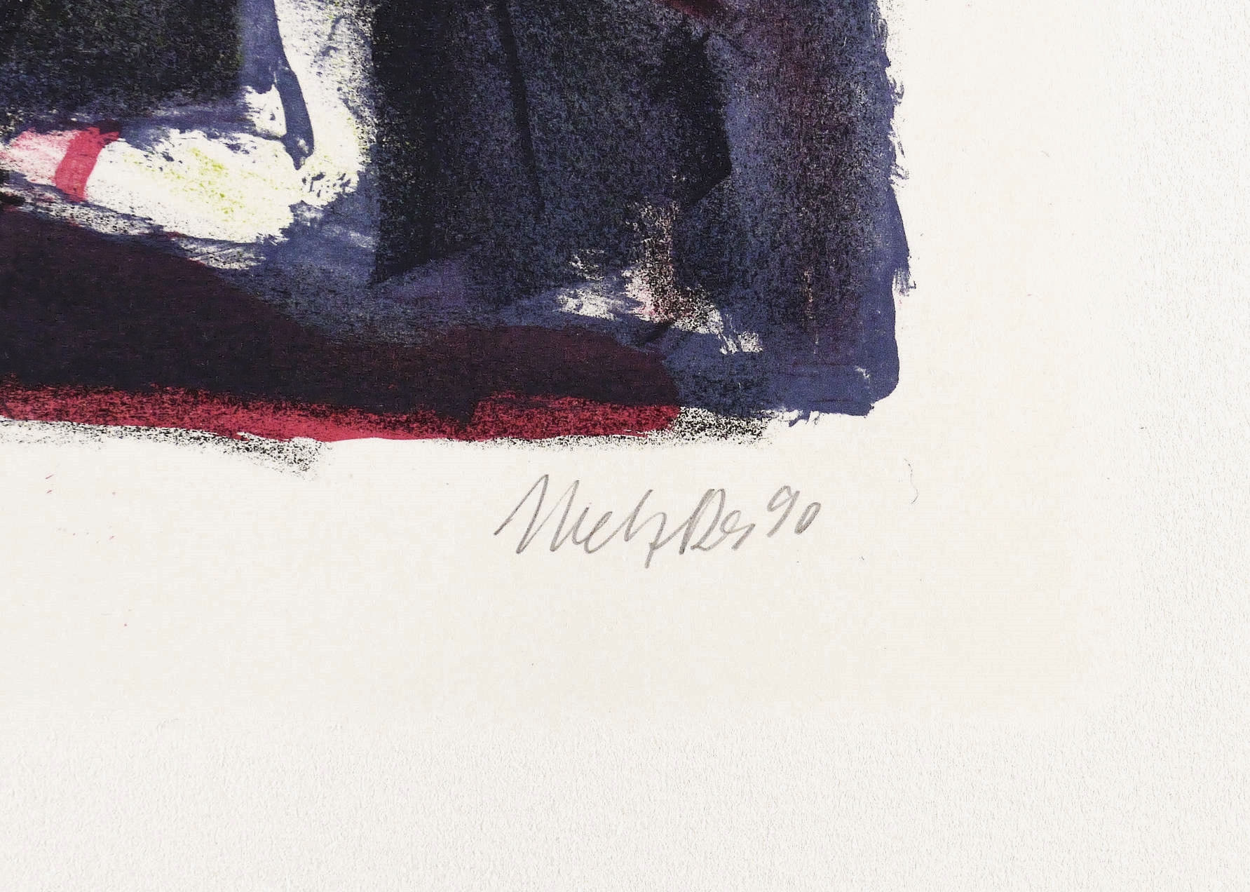 1990. Farblithografie / Pinsellithografie, in 5 Farben, auf schwerem hellchamois Hahnemühle. – Originale Künstlergrafik, von Harald Metzkes. – Künstlerexemplar (e.a.). – 19,5 x 26,0 cm (Darstellung / Druckbild), 40 x 53 cm (Blatt).