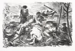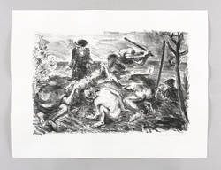 1978. Lithografie / Kreidelithografie, in Schwarz, auf hartem hellchamois Weißenborn. – Originale Künstlergrafik, von Harald Metzkes. – 25,3 x 39,0 cm (Darstellung / Druckbild), 37 x 49 cm (Blatt).
