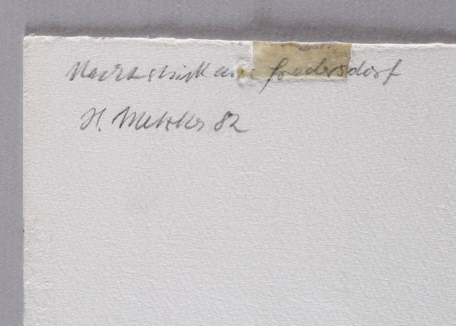 Verso in Bleistift bezeichnet, datiert und signiert: ″Nachtstück aus Fredersdorf / H. Metzkes 82″. – Rückseitig einige kleine Montagestellen lädiert. Vorderseite davon unbeeinträchtigt. Insgesamt guter Zustand.