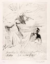 1987. Radierung / Vernis mou & Kaltnadel, in Schwarz, auf hellchamois Hahnemühle. – Originale Künstlergrafik, von Harald Metzkes. – Auflage Exemplar Nr. 18/40. – 31,8 x 24,7 cm (Darstellung / Platte), 54 x 40 cm (Blatt).