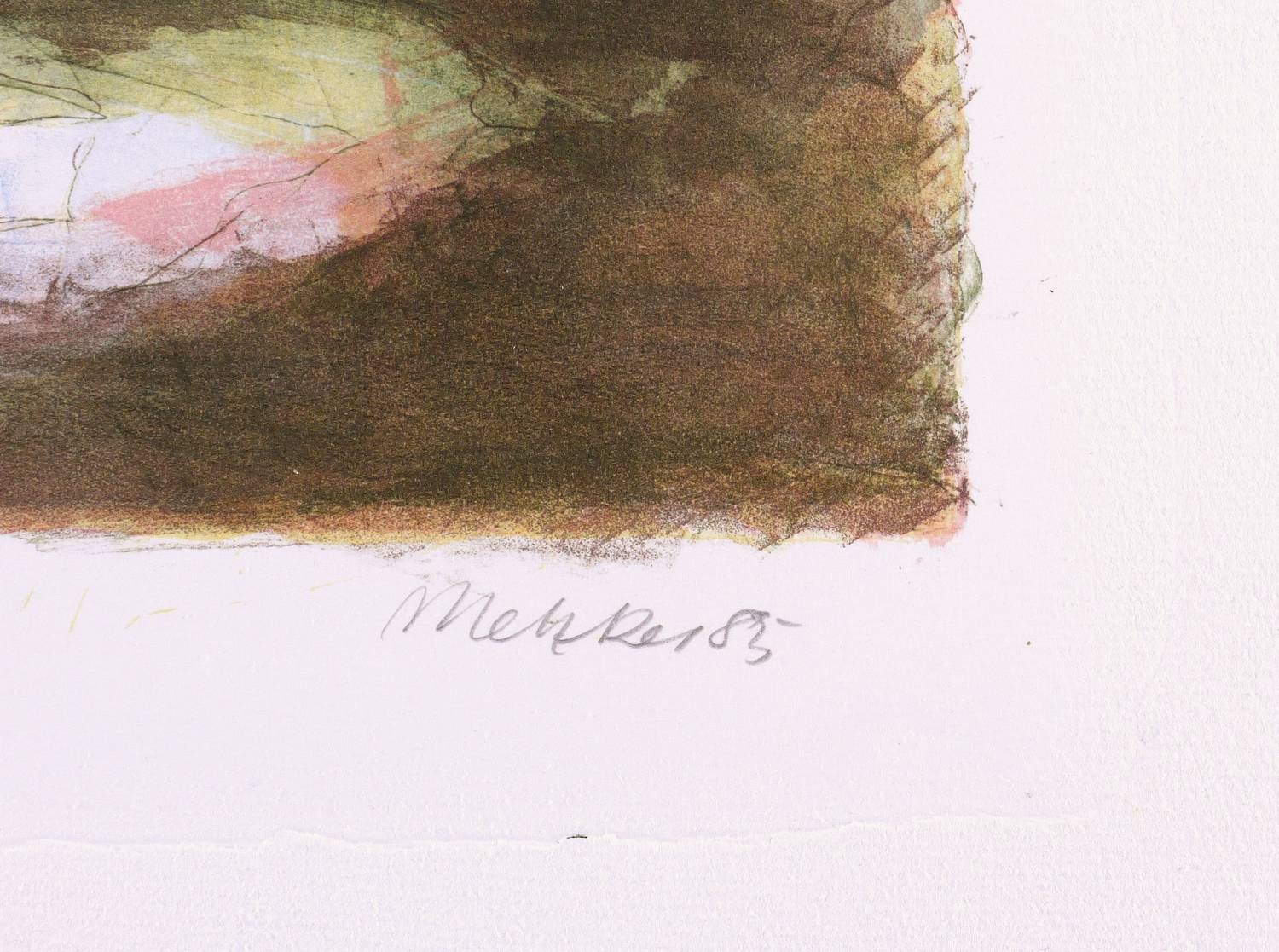 1985. Farblithografie / Kreide- & Pinsellithografie, in 7 Farben, auf schwerem hellchamois Hahnemühle. – Originale Künstlergrafik, von Harald Metzkes. – Auflage Exemplar Nr. 73/100. – 26,8 x 38,3 cm (Darstellung / Druckbild), 40 x 54 cm (Blatt).