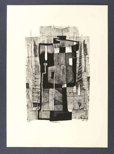 1970. Lithografie / Feder- & Pinsellithografie, partiell punktiert, in Schwarz, auf hartem chamois Velin. – Originale Künstlergrafik, von Alfred Traugott Mörstedt. – Auflage Exemplar Nr. 35/40. – 28,9 x 19,1 cm (Darstellung / Druckbild), 42 x 30 cm (Blatt).