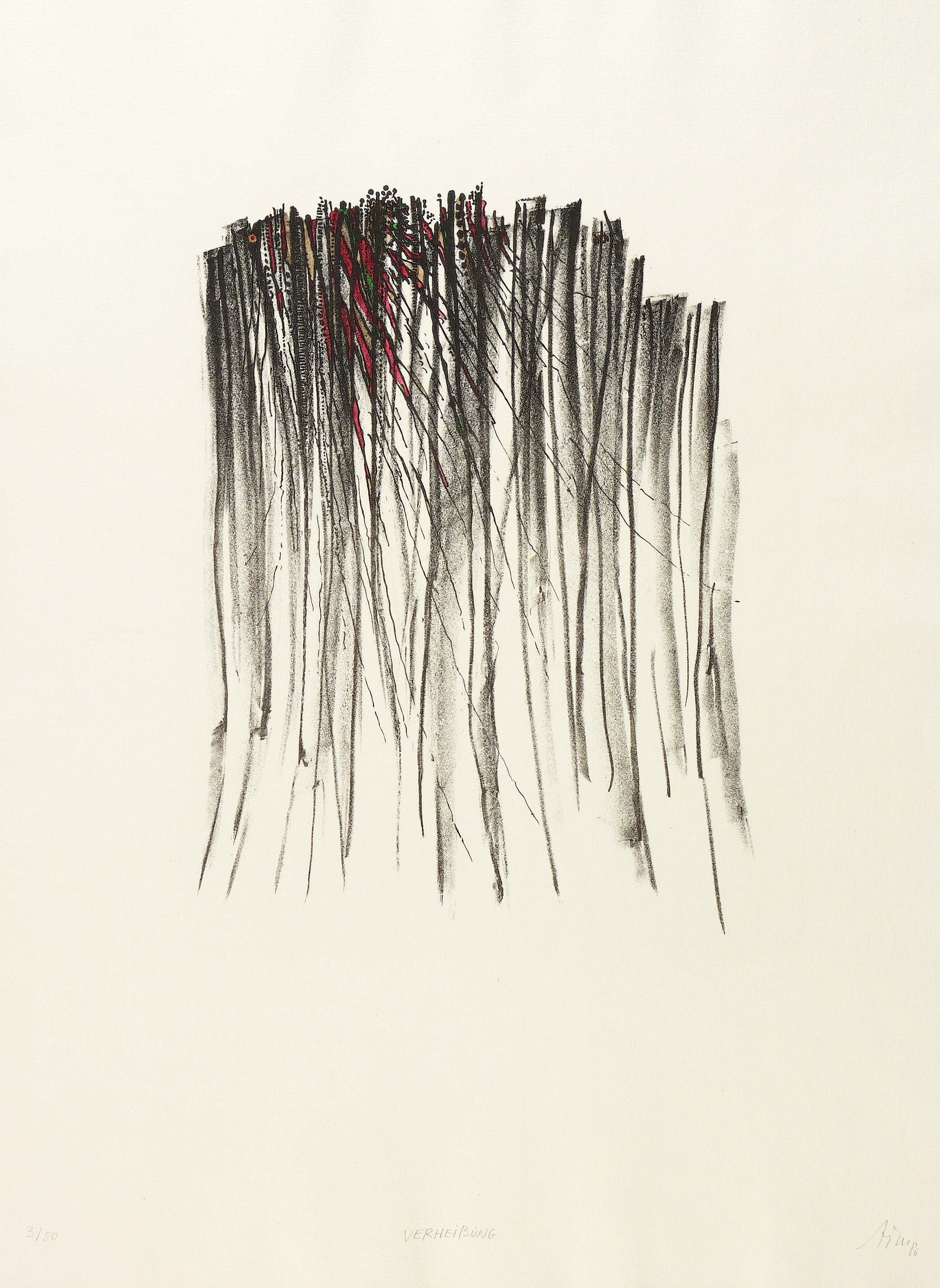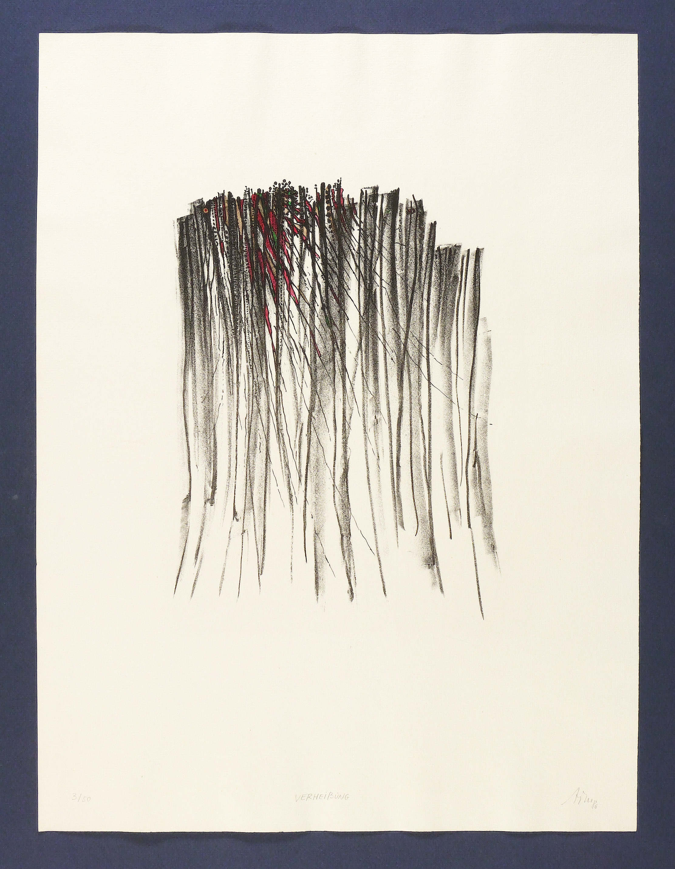 Mörstedt G 187. – Rechts unten in Bleistift signiert und datiert: ″ATM 86″. Links Auflagenbezeichnung: ″3/50″. Mittig Titel: ″VERHEIßUNG″. – Sehr guter Zustand.