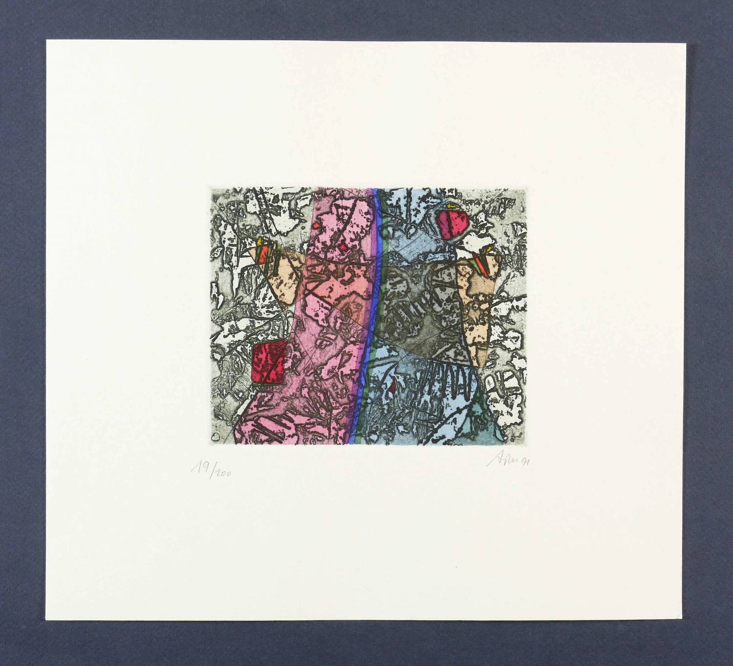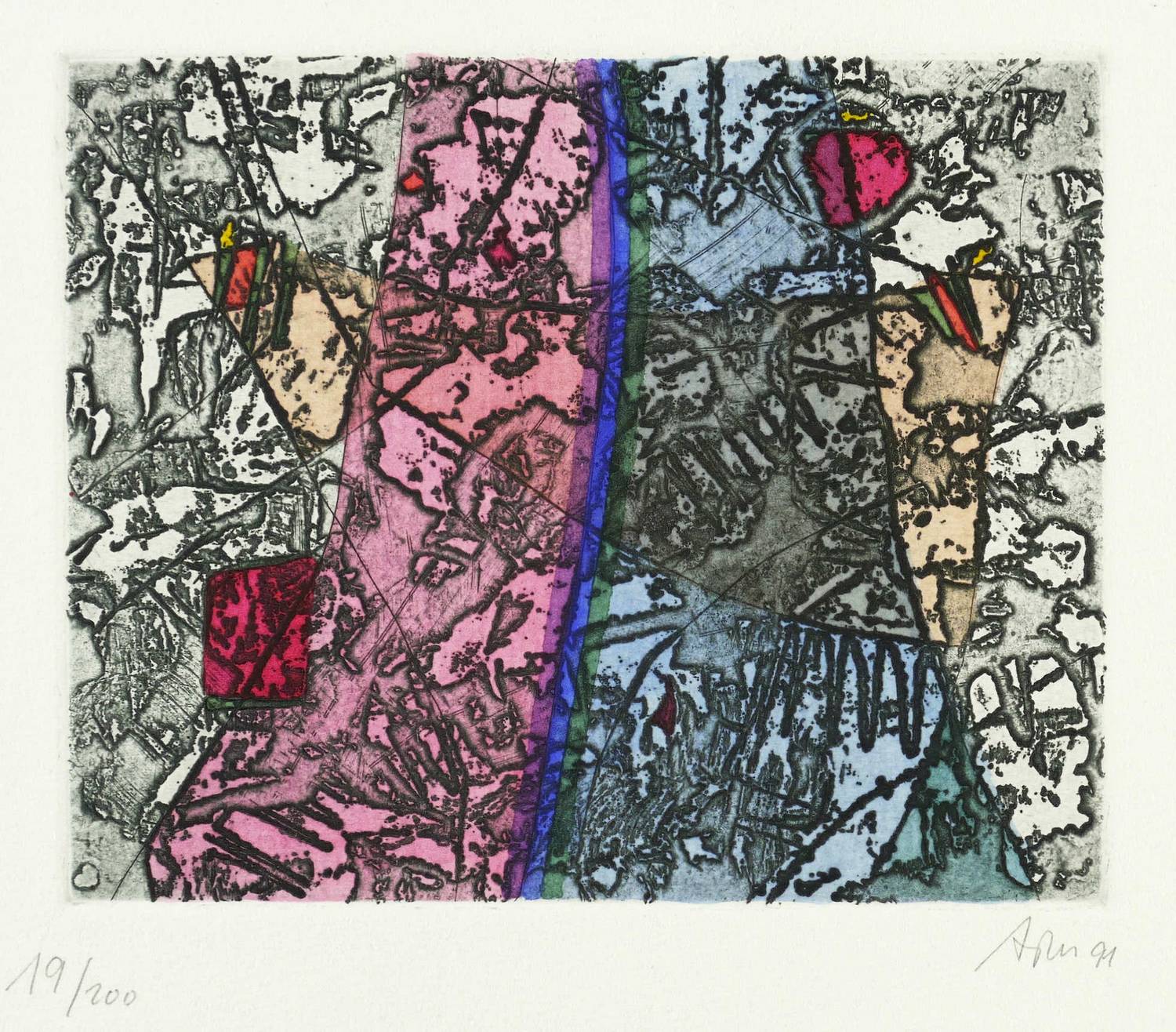 1991. Radierung / Reservage, in Schwarz, aquarelliert, auf hellem Velin. – Originale Künstlergrafik, von Alfred Traugott Mörstedt. – Auflage Exemplar Nr. 19/200. – 12,0 x 14,7 cm (Darstellung / Platte), 27 x 30 cm (Blatt).