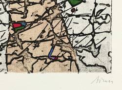 Mörstedt G 252. – Aus: Harald Gerlach & Alfred Traugott Mörstedt, Einschlüsse, Aufbrüche. Blätter zu sechs Monaten deutscher Geschichte (Rudolstadt: Burgart-Presse 1991). – Rechts unten in Bleistift signiert und datiert: ″ATM 91″. Links eigenhändige Auflagenbezeichnung: ″19/200″. – Tadellos. Sehr gut erhalten.