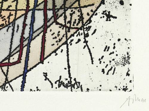 1991. Radierung / Reservage, in Schwarz, aquarelliert, auf hellem Velin. – Originale Künstlergrafik, von Alfred Traugott Mörstedt. – Auflage Exemplar Nr. 19/200. – 8,0 x 13,1 cm (Darstellung / Platte), 27 x 29 cm (Blatt).