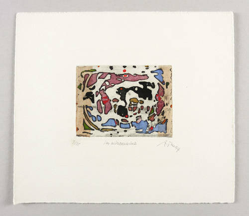 1994. Radierung / Strichätzung, in Schwarz, aquarelliert, auf chamois Hahnemühle. – Von Alfred Traugott Mörstedt. – Auflage Exemplar Nr. 3/35. – 6,9 x 9,8 cm (Darstellung / Platte), 20 x 23 cm (Blatt).