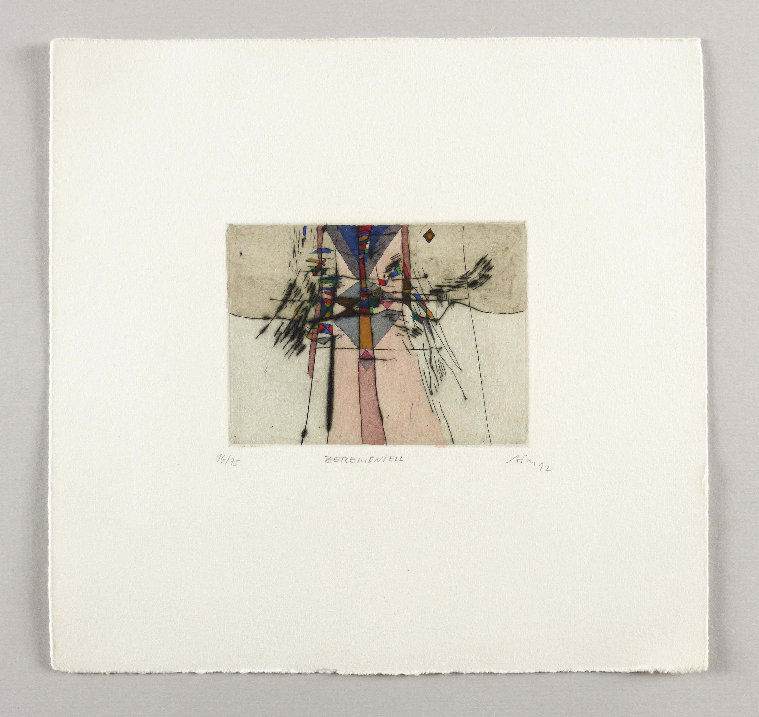 Mörstedt G 266. – Rechts unten in Bleistift signiert und datiert: ″ATM 92″. Links Auflagenbezeichnung: ″16/75″. Mittig Titel: ″ZEREMONIELL″. – Originalrandiges Exemplar. Tadellos und farbfrisch. Sehr guter Zustand.