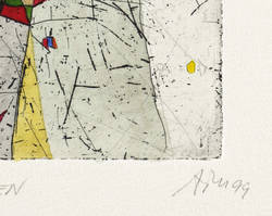 Mörstedt G 328. – Rechts unten in Bleistift signiert und datiert: ″ATM 99″. Links Auflagenbezeichnung: ″17/24″. Mittig Titel: ″MERKZEICHEN″. – Originalrandiges Exemplar. Ohne Mängel, farbfrisch und kontrastreich. Sehr guter Zustand.