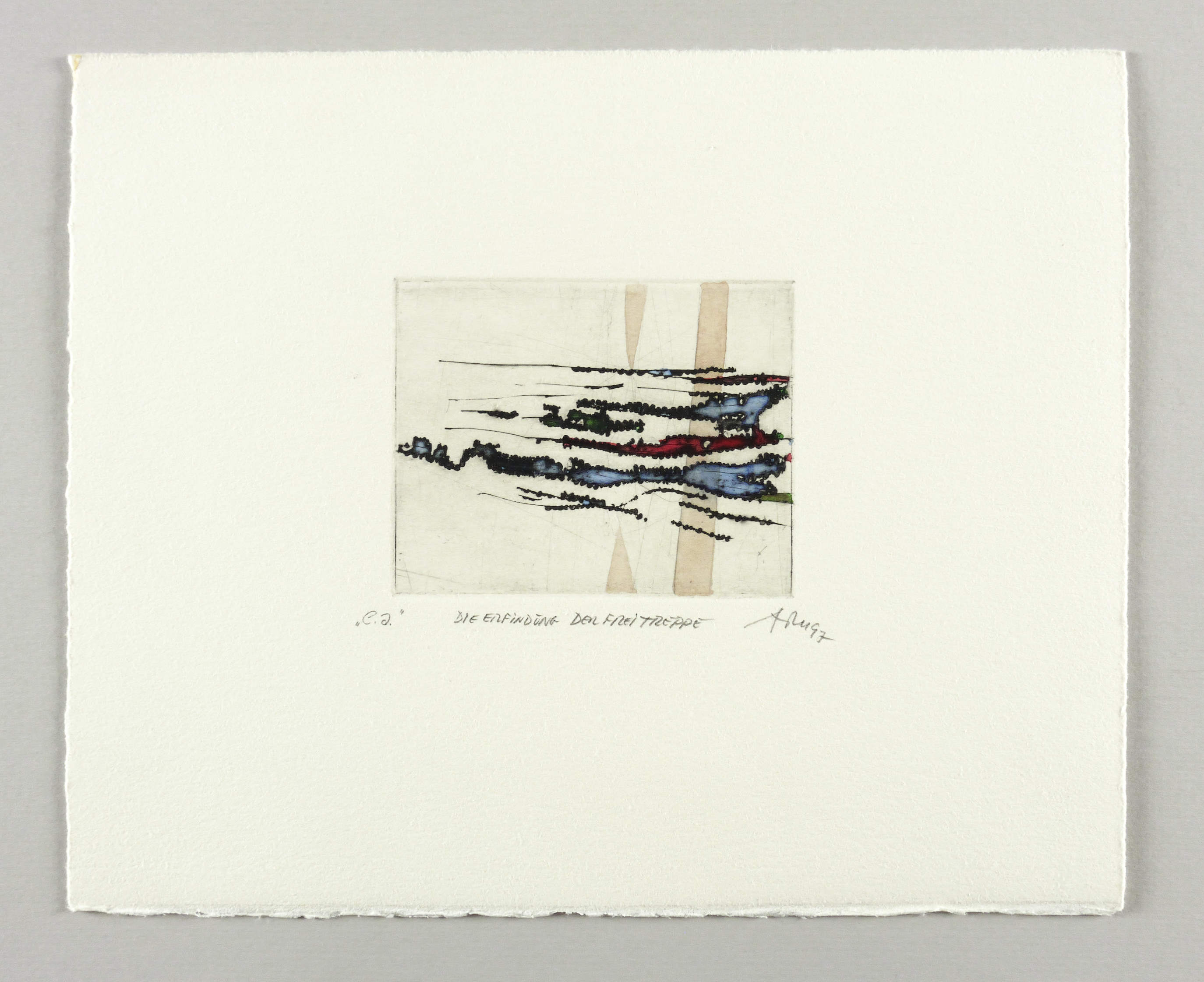 Mörstedt G 312. – Rechts unten in Bleistift signiert und datiert: ″ATM 97″. Links Auflagenbezeichnung: ″e.a.″. Mittig Titel: ″DIE ERFINDUNG DER FREITREPPE″. – Originalrandiges Exemplar. Ohne Mängel. Sehr guter Zustand.
