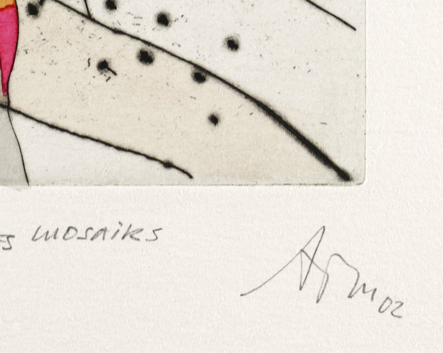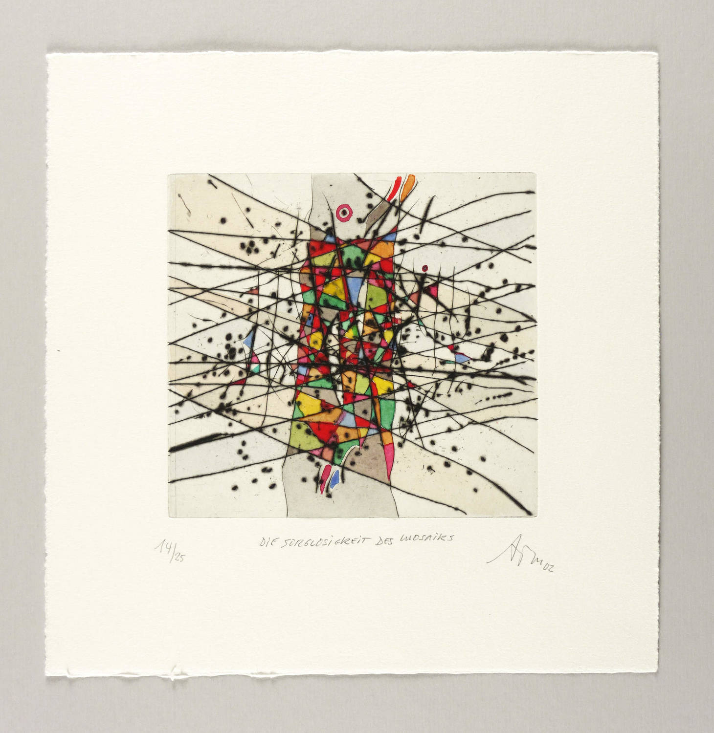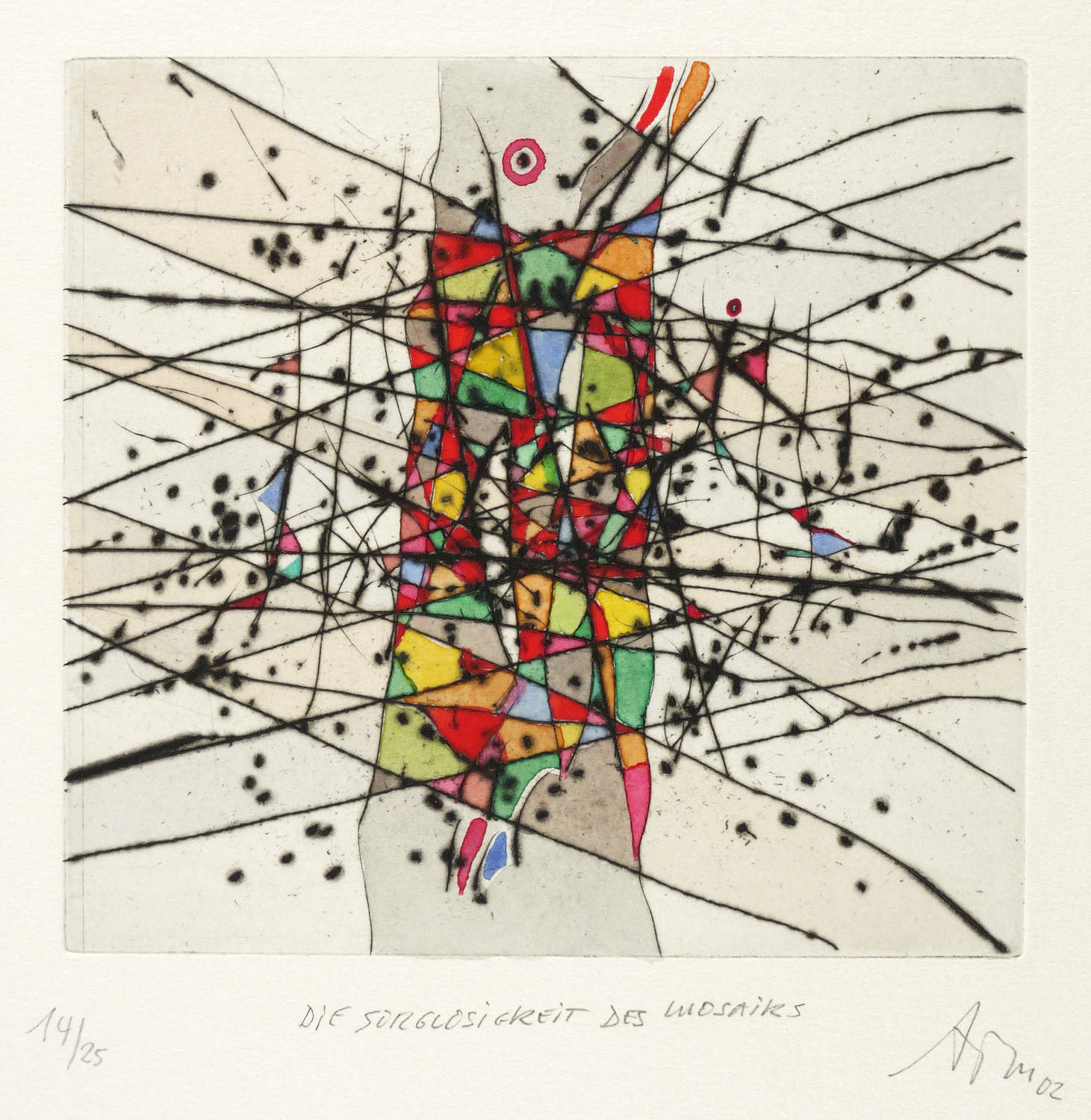 Mörstedt G 363. – Rechts unten in Bleistift signiert und datiert: ″ATM 02″. Links Auflagenbezeichnung: ″14/25″. Mittig Titel: ″DIE SORGLOSIGKEIT DES MOSAIKS″. – Schönes Exemplar. Farbfrisch und von allerbester Erhaltung. Sehr guter Zustand.
