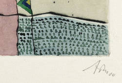 2000. Radierung / Strichätzung, in Schwarz, aquarelliert, auf hellchamois Hahnemühle. – Von Alfred Traugott Mörstedt. – Auflage Exemplar Nr. 23/25. – 14,1 x 22,9 cm (Darstellung / Platte), 21 x 30 cm (Blatt).