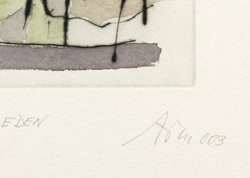 Mörstedt G 375. – Rechts unten in Bleistift signiert und datiert: ″ATM 003″. Links Auflagenbezeichnung: ″13/25″. Mittig Titel: ″MORGENSTUNDE IM GARTEN EDEN″. – Originalrandiges Exemplar. Sehr schön, farbfrisch und von allerbester Erhaltung. Hervorragender Zustand.