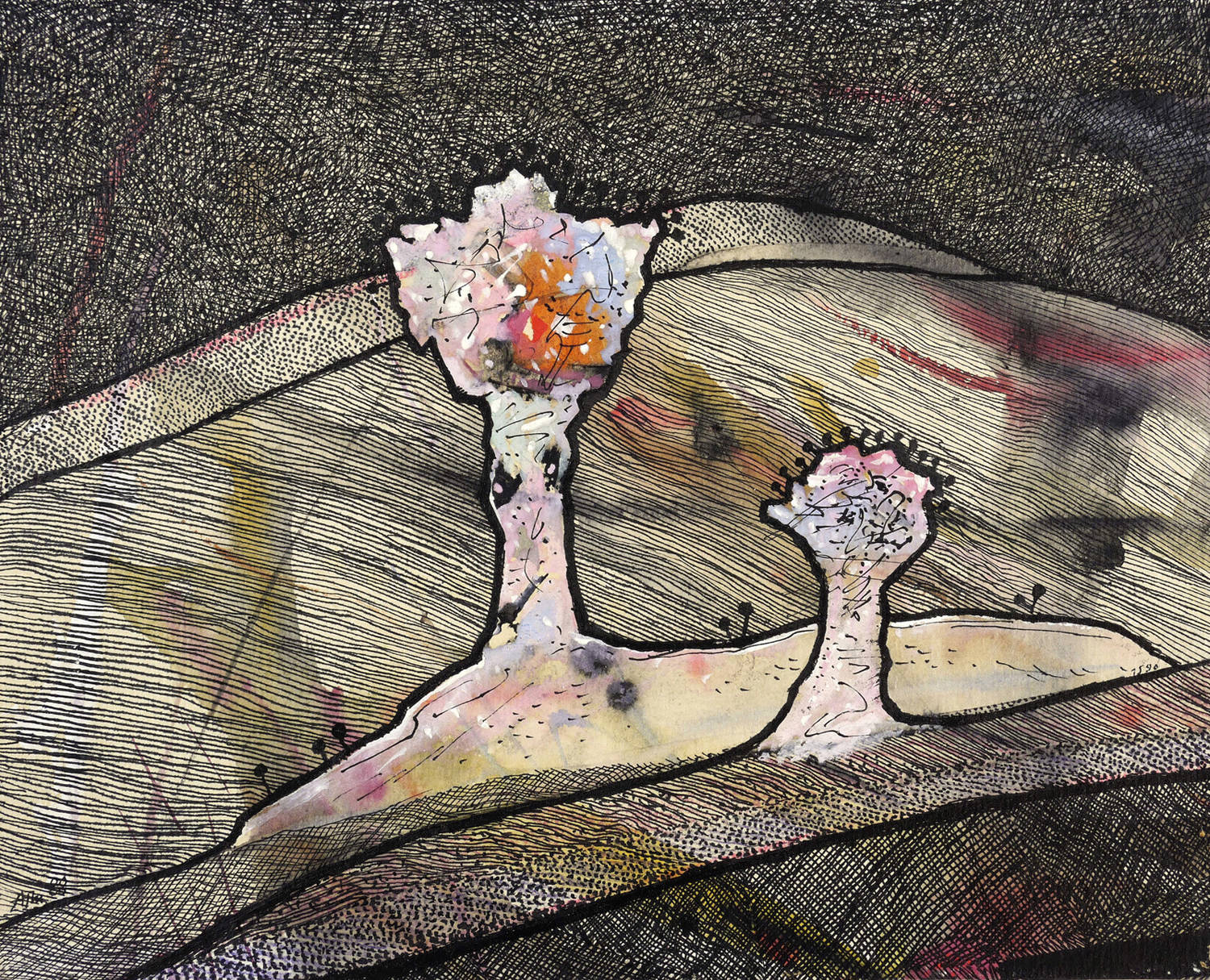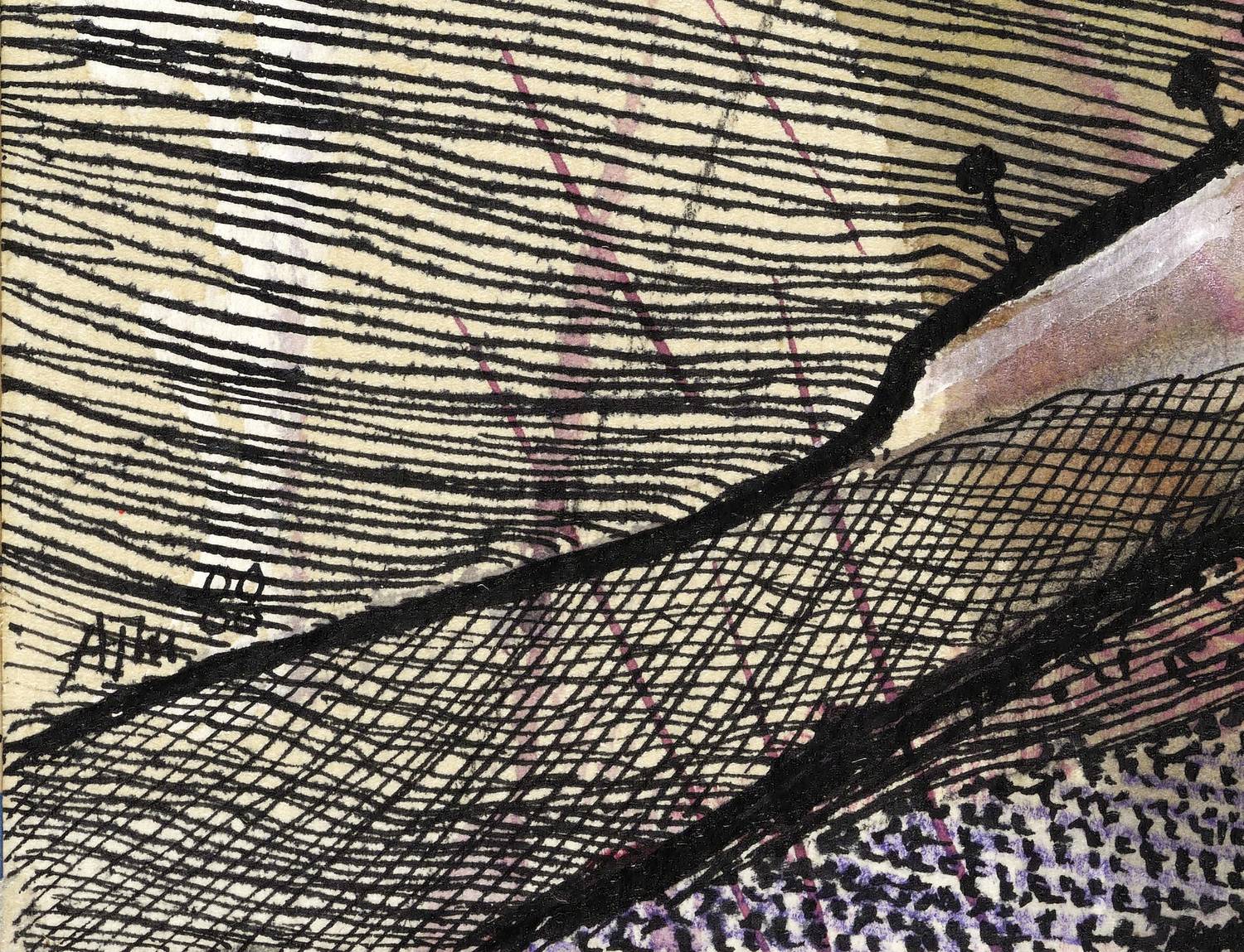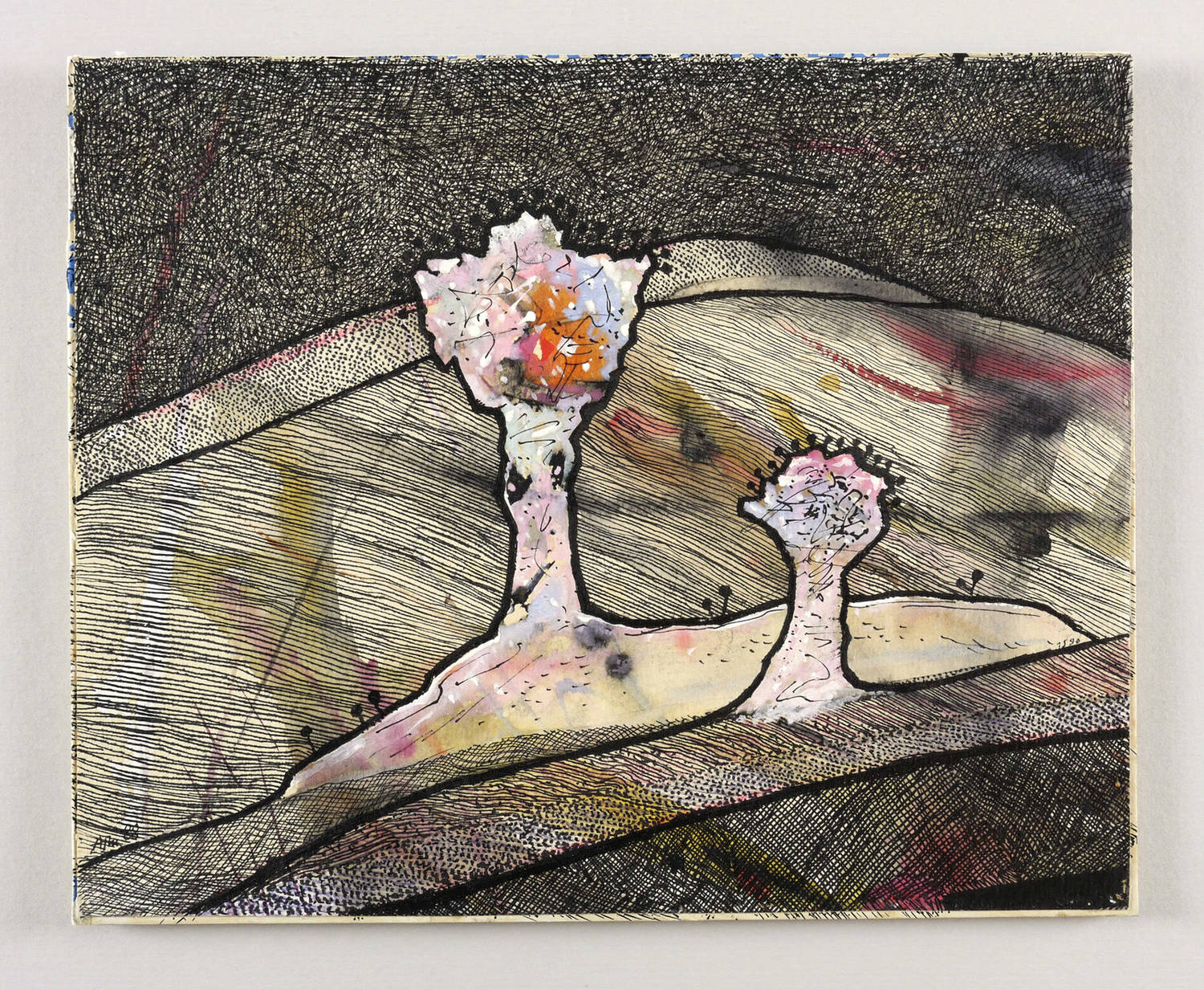 1988. Mischtechnik / Aquarell, Tusche & Gouache, auf Aquarellkarton, auf Pappe. – Von Alfred Traugott Mörstedt. – 21,5 x 26,3 cm (Darstellung / Blatt).